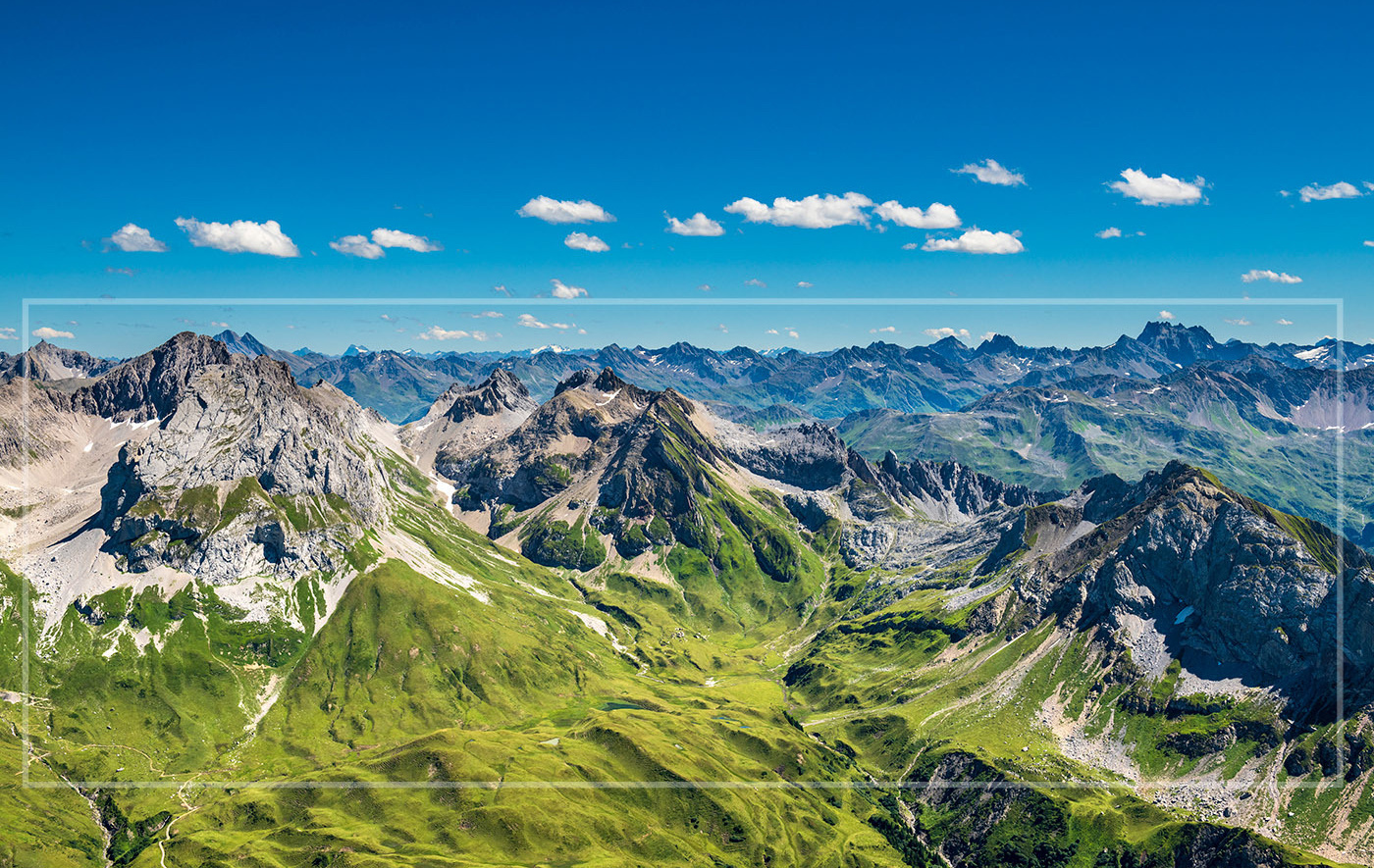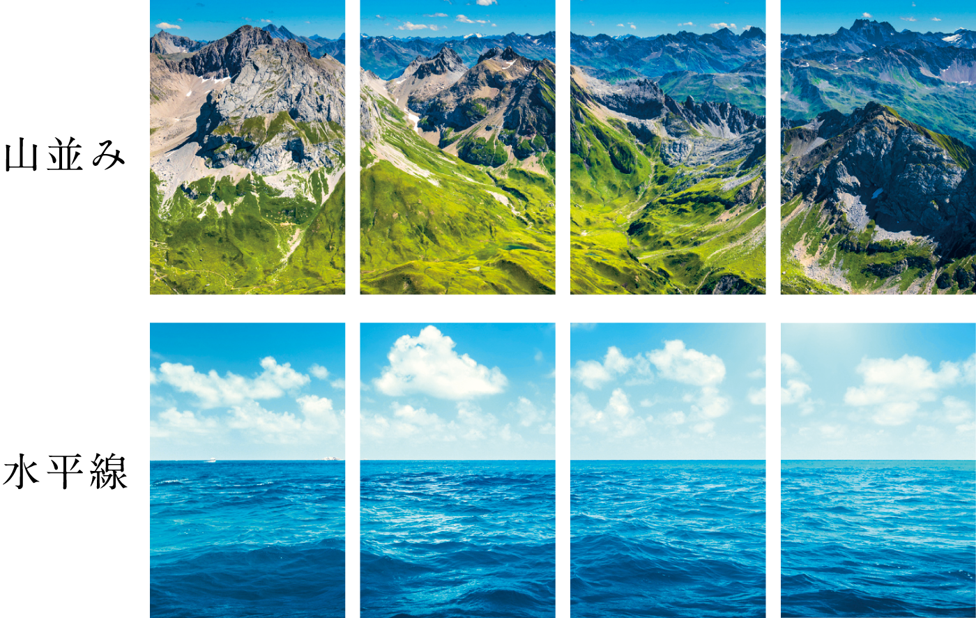 壮大に広がるパノラマの風景写真を前面と下面に配置して立体表現を実現した小さな4つのマグネット"Panorama"。大自然のパノラマを、手のひらに。頂上に登り見下ろした山脈のような 〜山並み〜。