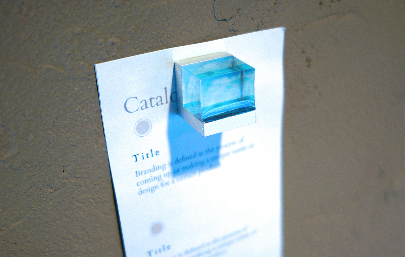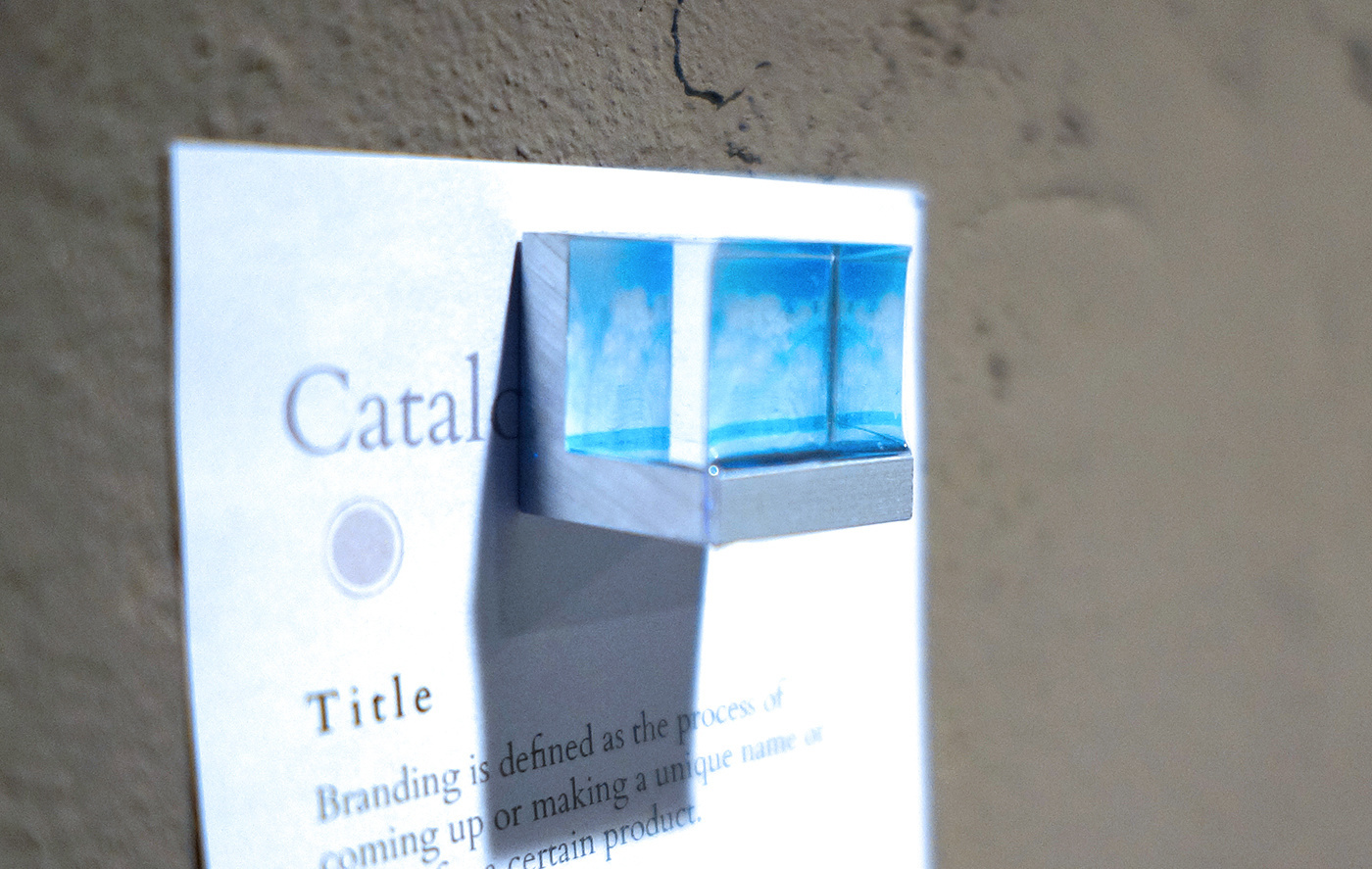 フィルムを真ん中で折りL字型のアルミ上に配置する事で立体的に映るように見せています。斜め上から見るとより立体的になります。