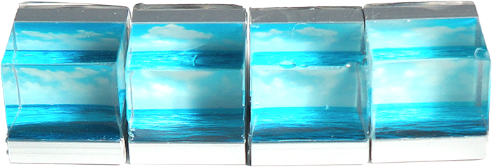 壮大に広がるパノラマの風景写真を前面と下面に配置して立体表現を実現した小さな4つのマグネット"Panorama"。大自然のパノラマを、手のひらに。青い海面がどこまでも続いていくような 〜水平線〜。