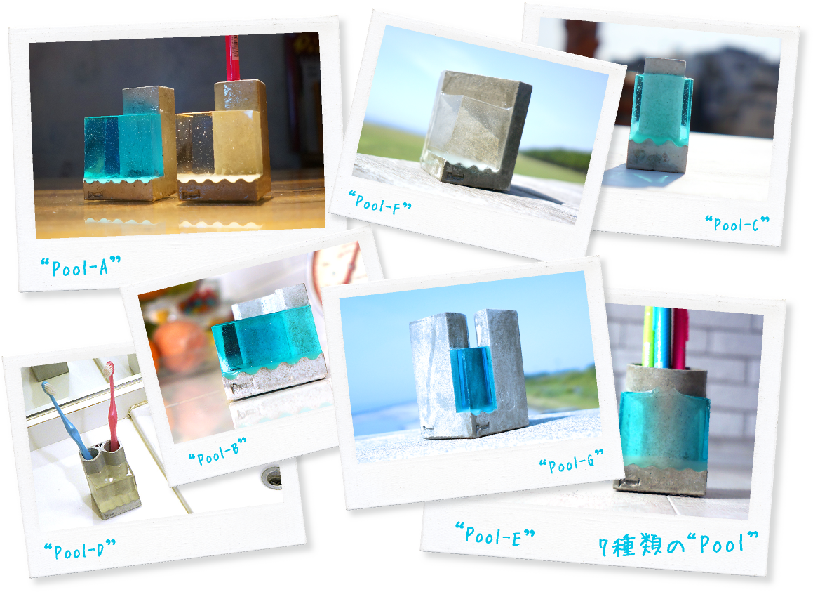 あなたの机に“卓上プール”。オリジナルペンスタンド“Pool”が誕生しました。人は海・湖を眺めたり、都会でも公園の噴水を見ることで気分転換しています。水は私たちの生活にに安らぎや落ち着きを与えてくれます。その安らぎ効果を表現したのが“Pool”です。 あなたのデスクに小さなプールを置いてみてはいかがでしょうか?