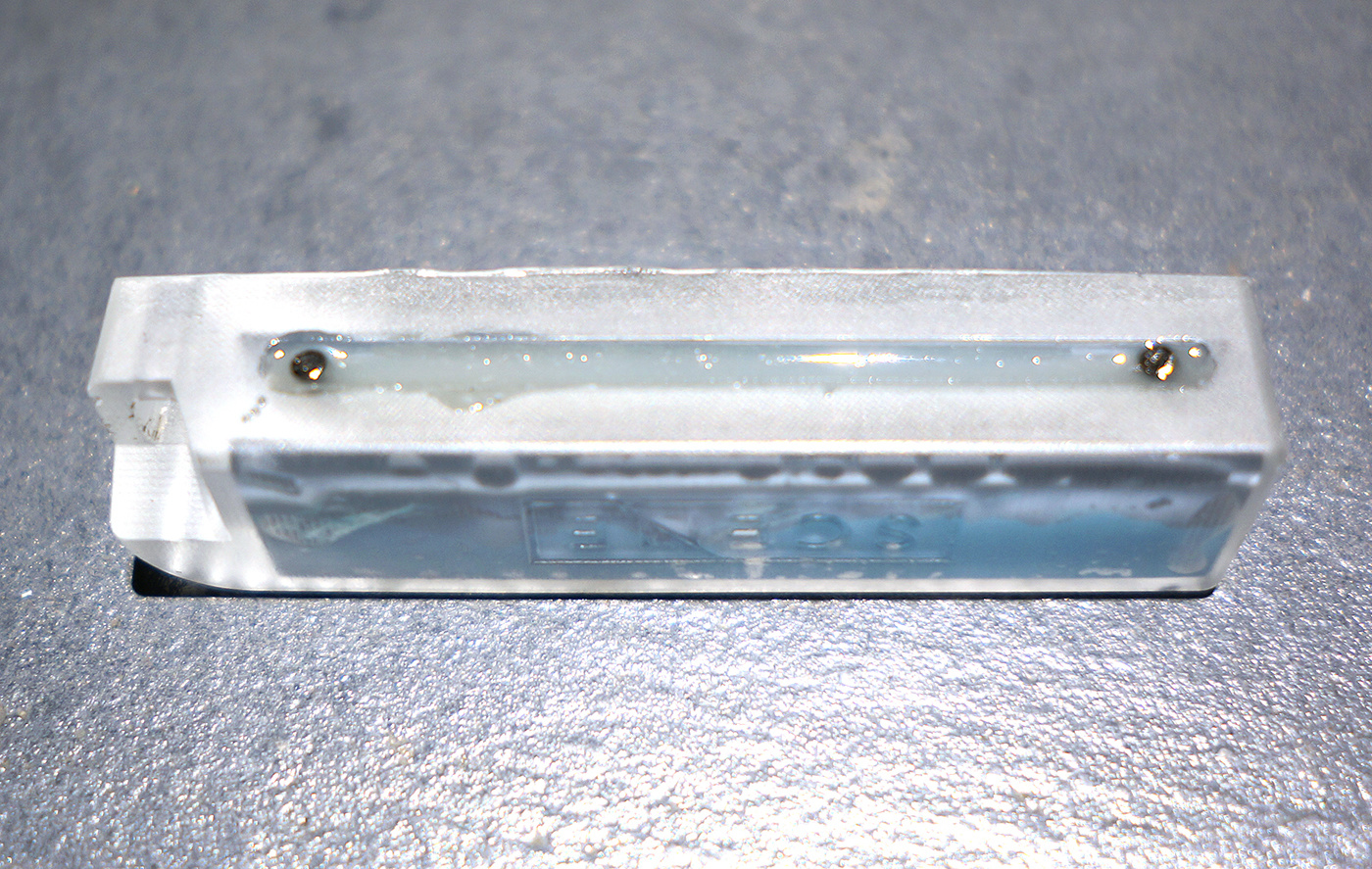 左上部滑り止めの溝を付けました。握った時の親指が触れる位置にあり、持ったときのグリップの役割をします。またポケットから取り出す時どの位置/方向で見ずとも分かるので、鍵穴に差し込むのが容易になります。