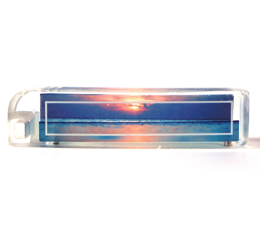 遥か昔に見たあの場面、何時なのか何処なのか思い出せない。皆さんにもあると思います。そんな忘れられない場面(SCENE)を形にしました。オリジナルキーホルダーSCENE(シーン)。昔見た思い出をポケットに入れて。。。フィルムは水平線向こうの夕暮れの光と蓄光塗料の光がピッタリと合う“Sunset“。