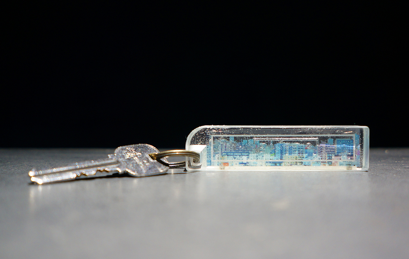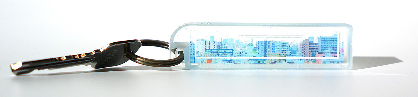 遥か昔に見たあの場面、何時なのか何処なのか思い出せない。皆さんにもあると思います。そんな忘れられない場面(SCENE)を形にしました。オリジナルキーホルダーSCENE(シーン)。昔見た思い出をポケットに入れて。。。フィルムは東京都内の街並みを立体的に表現し、まるでそこに住んでいるような水平目線で表現している“City“。
