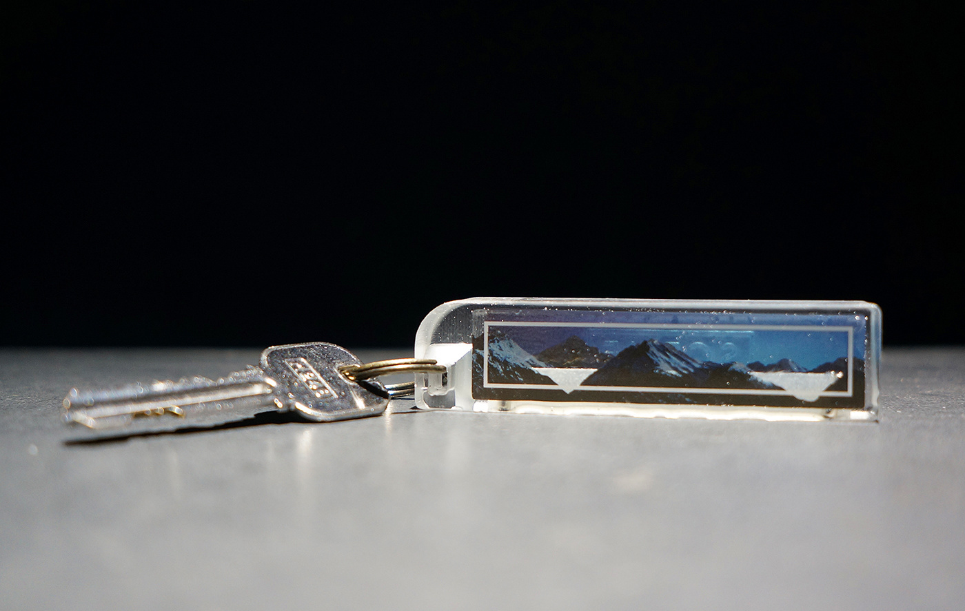 遥か昔に見たあの場面、何時なのか何処なのか思い出せない。皆さんにもあると思います。そんな忘れられない場面(SCENE)を形にしました。オリジナルキーホルダーSCENE(シーン)。昔見た思い出をポケットに入れて。。。フィルムは夜の星空とスイスアルプスの山並みで奥行き壮大なスケール感を表現した“Mountain“。