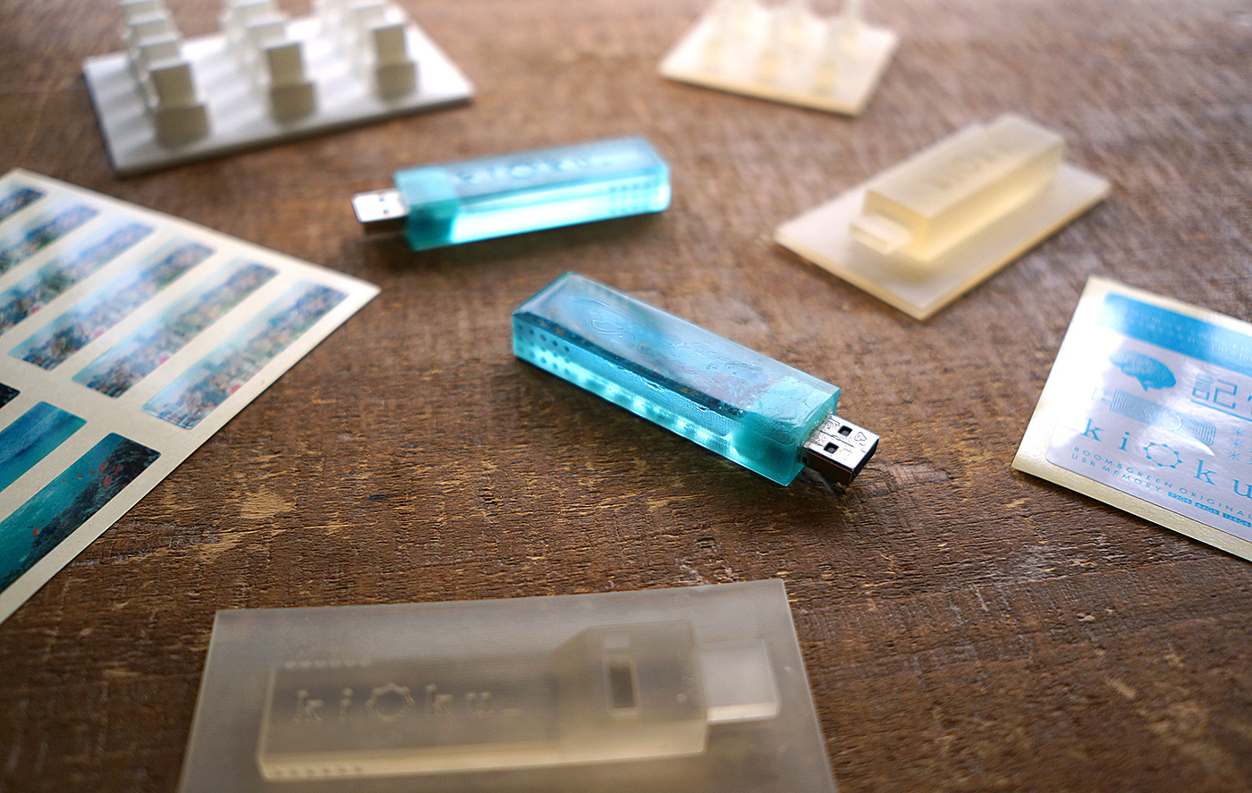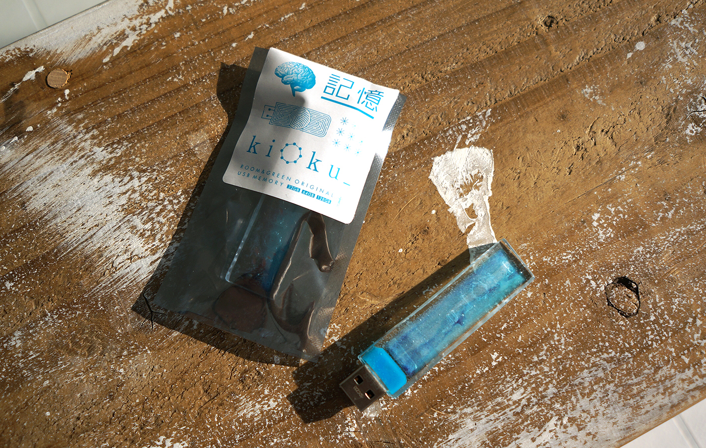 机の引き出しには今でも眠る写真。何処で撮ったのか思い出せない。捨てようをしたけれど、記憶までも捨てるようで・・・部屋とmidoriのオリジナルUSB memory "kioku_" あなたの思い出を記憶するアルバムのような存在になれたらと思い製作しました。本体に記憶の残る、美しくどこか懐かしい半透明の写真を埋め込みました。あなたの思い出を記憶するように・・・。