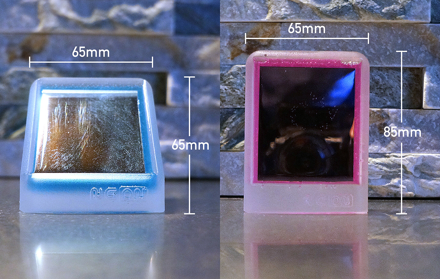 スタンド用(置き)NEON-AはW65×S65mm、ハンディ用(手持ち)NEON-BはW65×S35mmのどちらも場所をとらないコンパクトサイズです。スペースの少なめなオフィスのデスクなどに最適です。