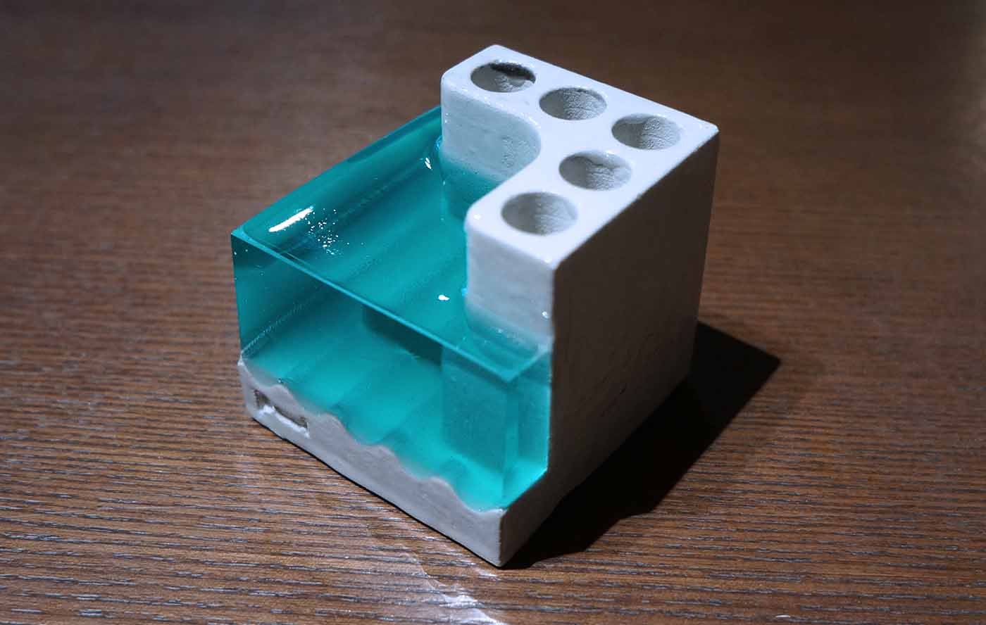あなたの机に“安らぎ”のオブジェを・・・ペンスタンド“Pool”は都会の公園で噴水を眺めたりと水は私たちは安らぎや落ち着きを得ることがあります。その水に安らぎ効果を自宅に取り入れたい、との思いで製作完成したものが、Poolです。どこにも売っていないオリジナル製品です。