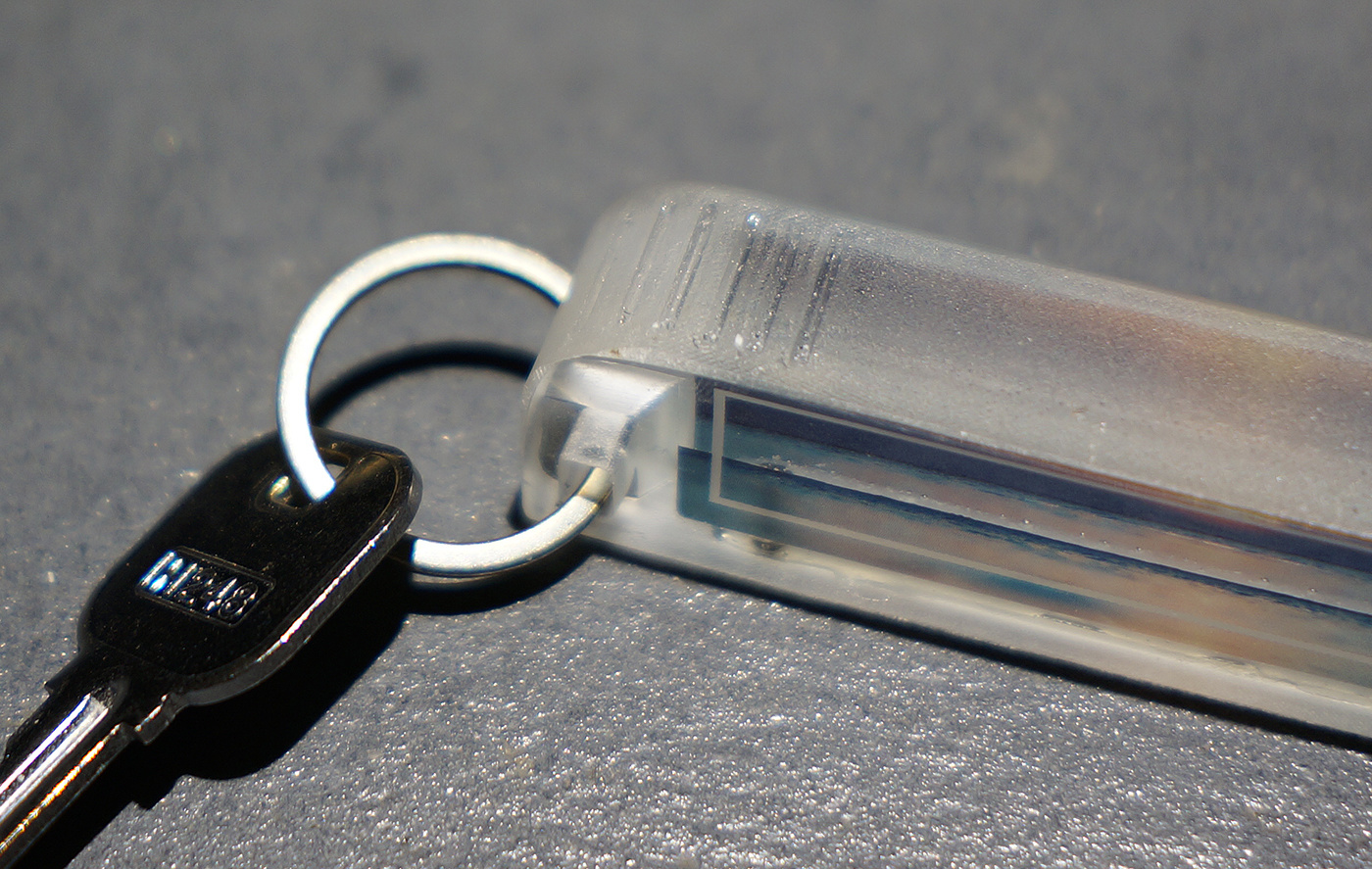 左上部滑り止めの溝を付けました。握った時の親指が触れる位置にあり、持ったときのグリップの役割をします。またポケットから取り出す時どの位置/方向で見ずとも分かるので、鍵穴に差し込むのが容易になります。