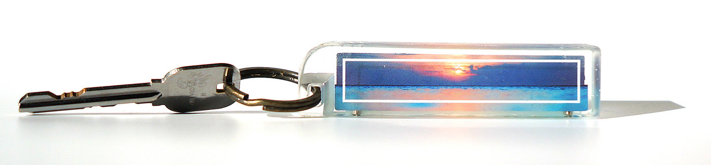 遥か昔に見たあの場面、何時なのか何処なのか思い出せない。皆さんにもあると思います。そんな忘れられない場面(SCENE)を形にしました。オリジナルキーホルダーSCENE(シーン)。昔見た思い出をポケットに入れて。。。フィルムは水平線向こうの夕暮れの光と蓄光塗料の光がピッタリと合う“Sunset“。
