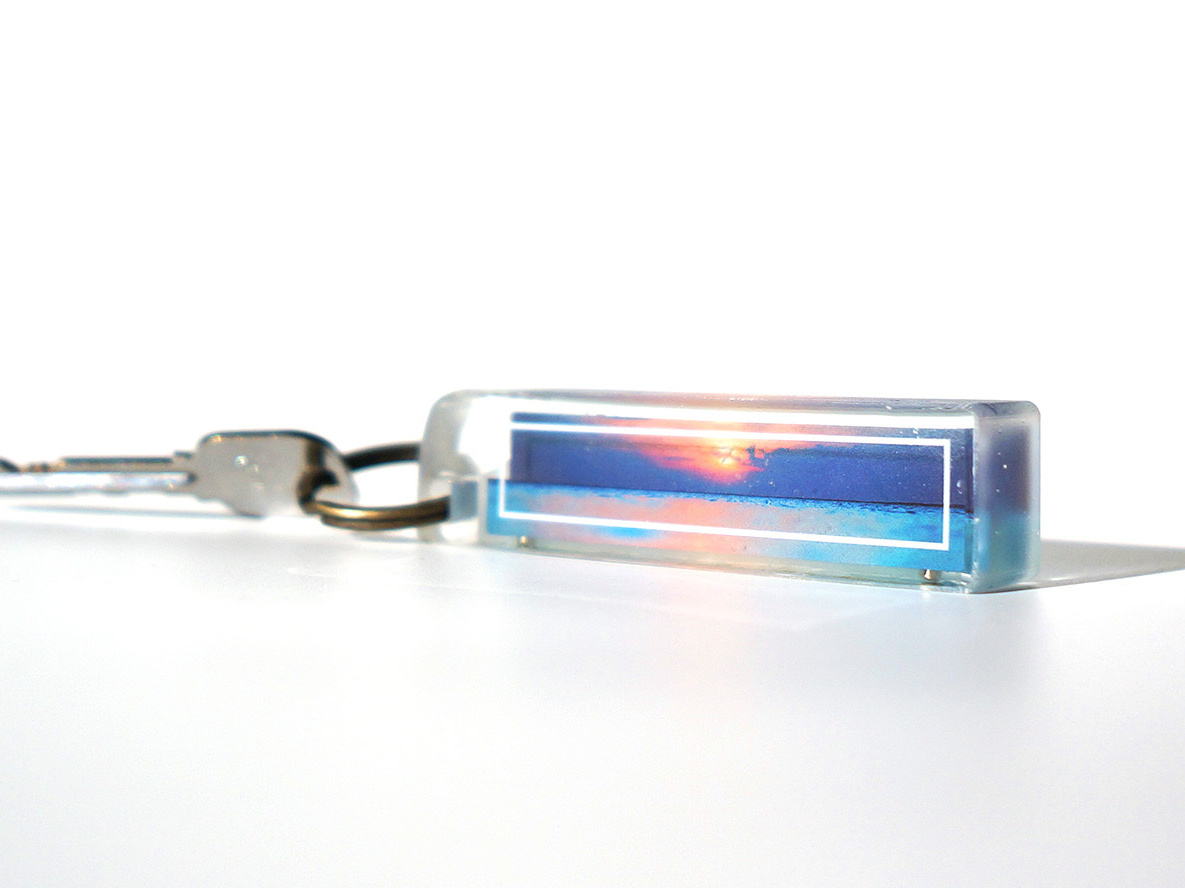 遥か昔に見たあの場面、何時なのか何処なのか思い出せない。皆さんにもあると思います。そんな忘れられない場面(SCENE)を形にしました。オリジナルキーホルダーSCENE(シーン)。昔見た思い出をポケットに入れて。。。フィルムは水平線向こうの夕暮れの光と蓄光塗料の光がピッタリと合う“Sunset“。