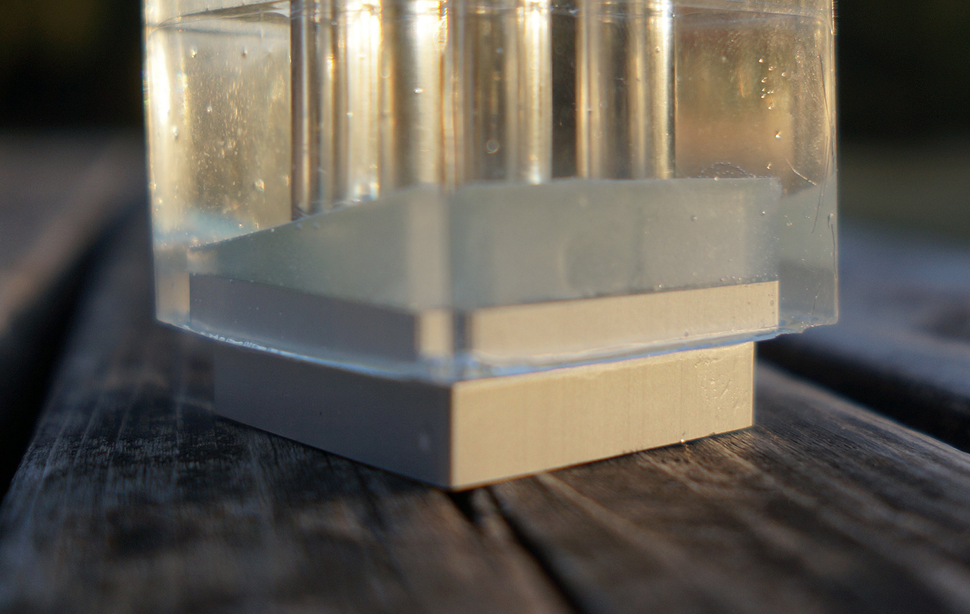 なるべく見やすくなるように10度斜めに風景を配置しました。試作品を何個か作り、見やすく違和感のない角度になりました。この10度の傾きがHAKOSORAの特徴となっています。