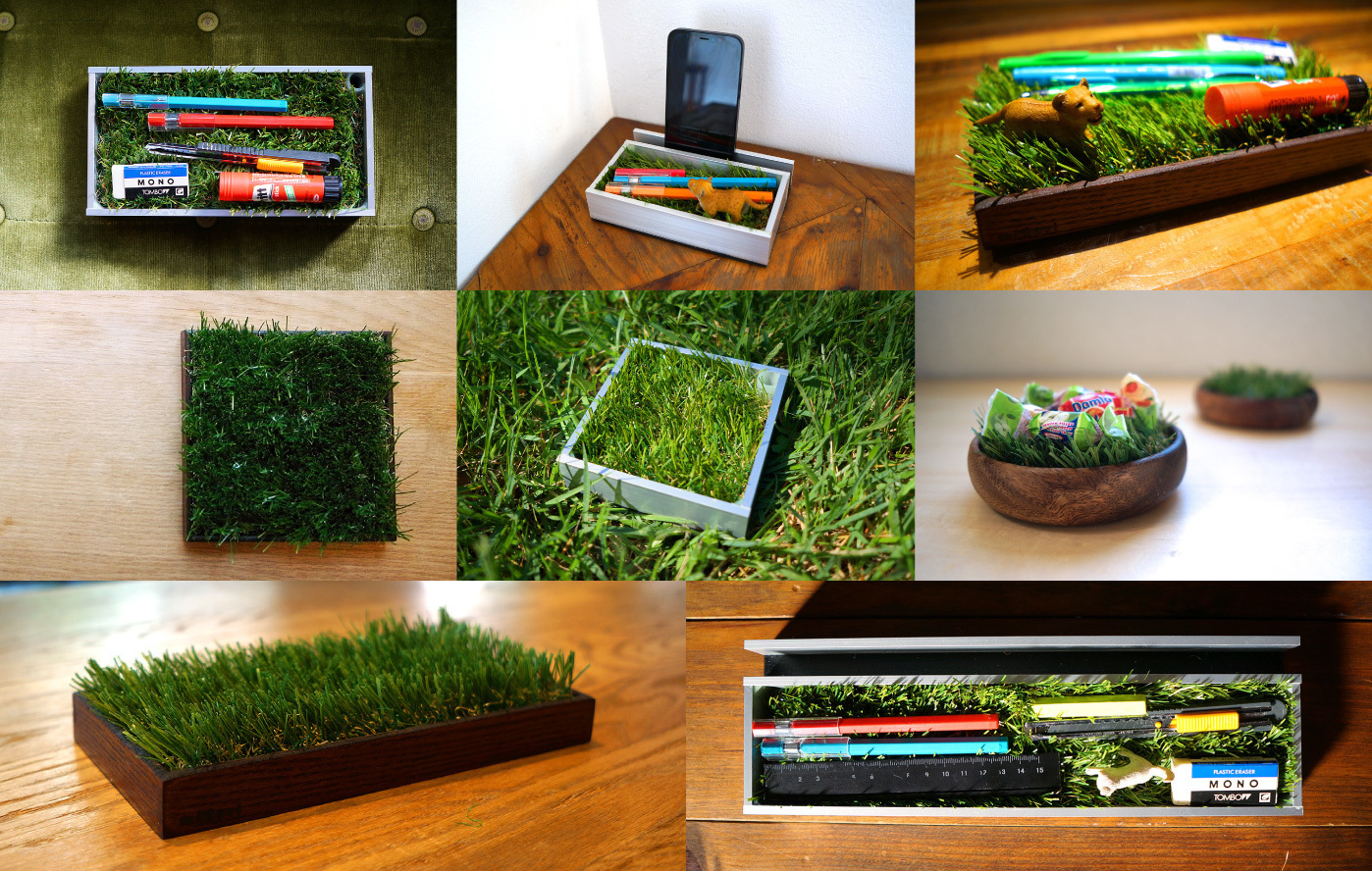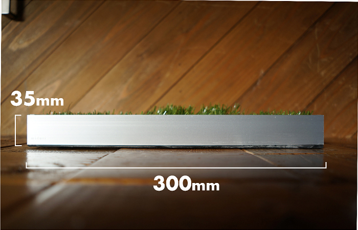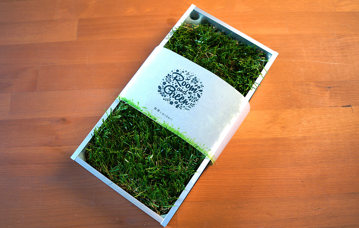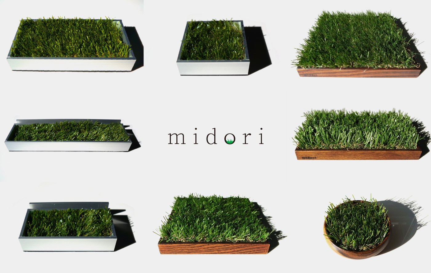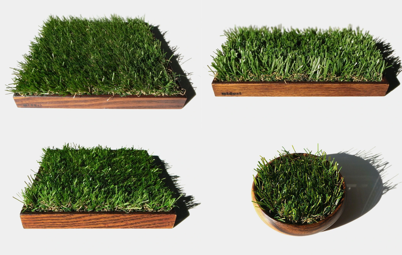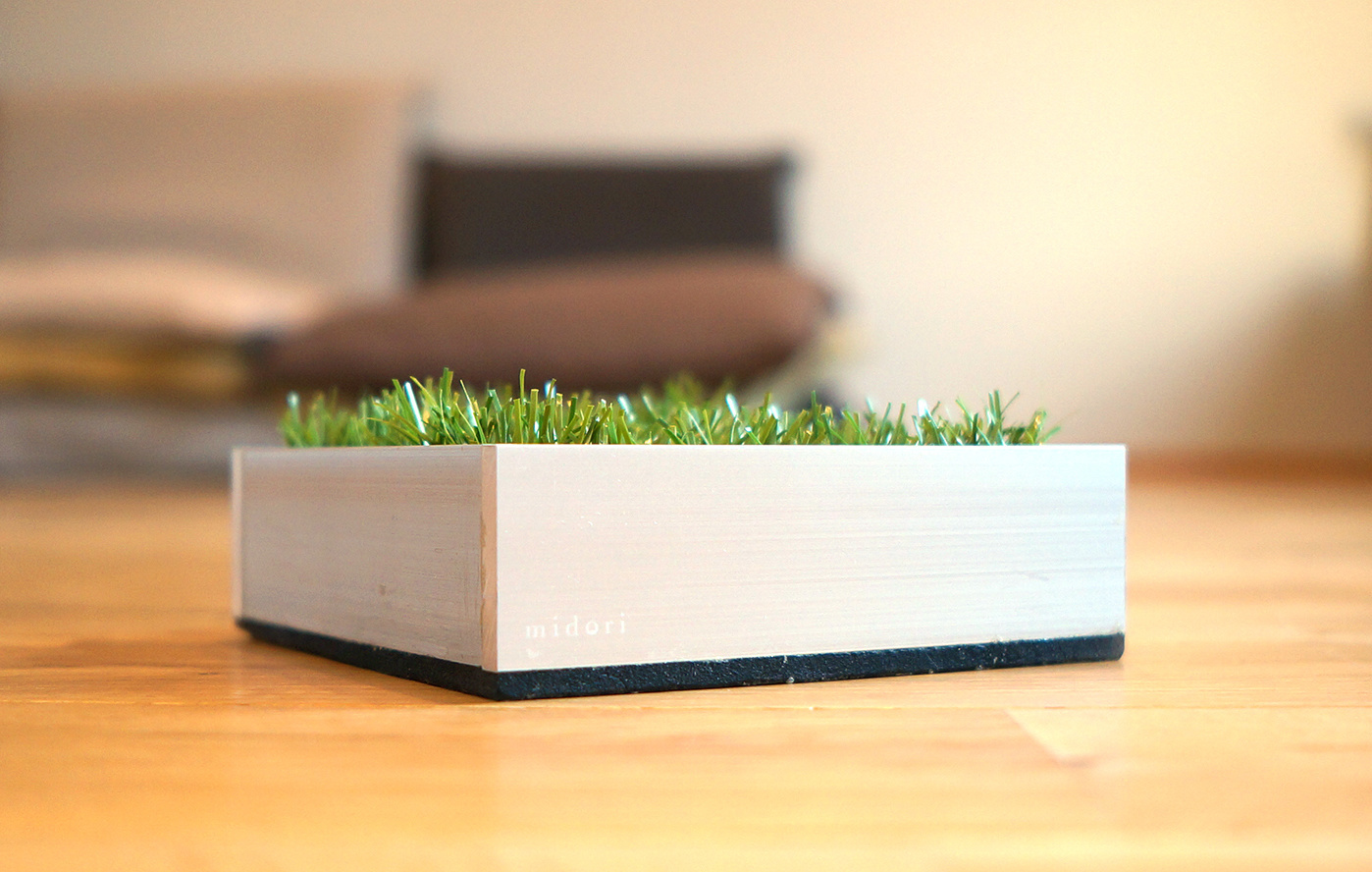 midoriはまるで公園の芝生を切り抜いたような小さな公園です。複数の色の違う芝や枯れ芝でまるで本物の芝生のようです。近所の小さな公園をあなたの部屋に。
