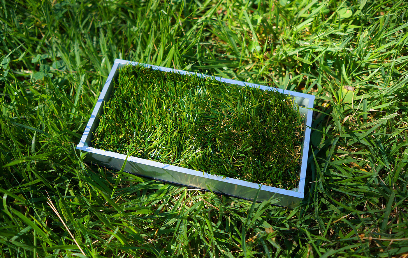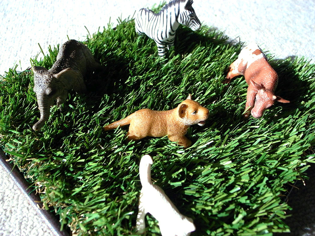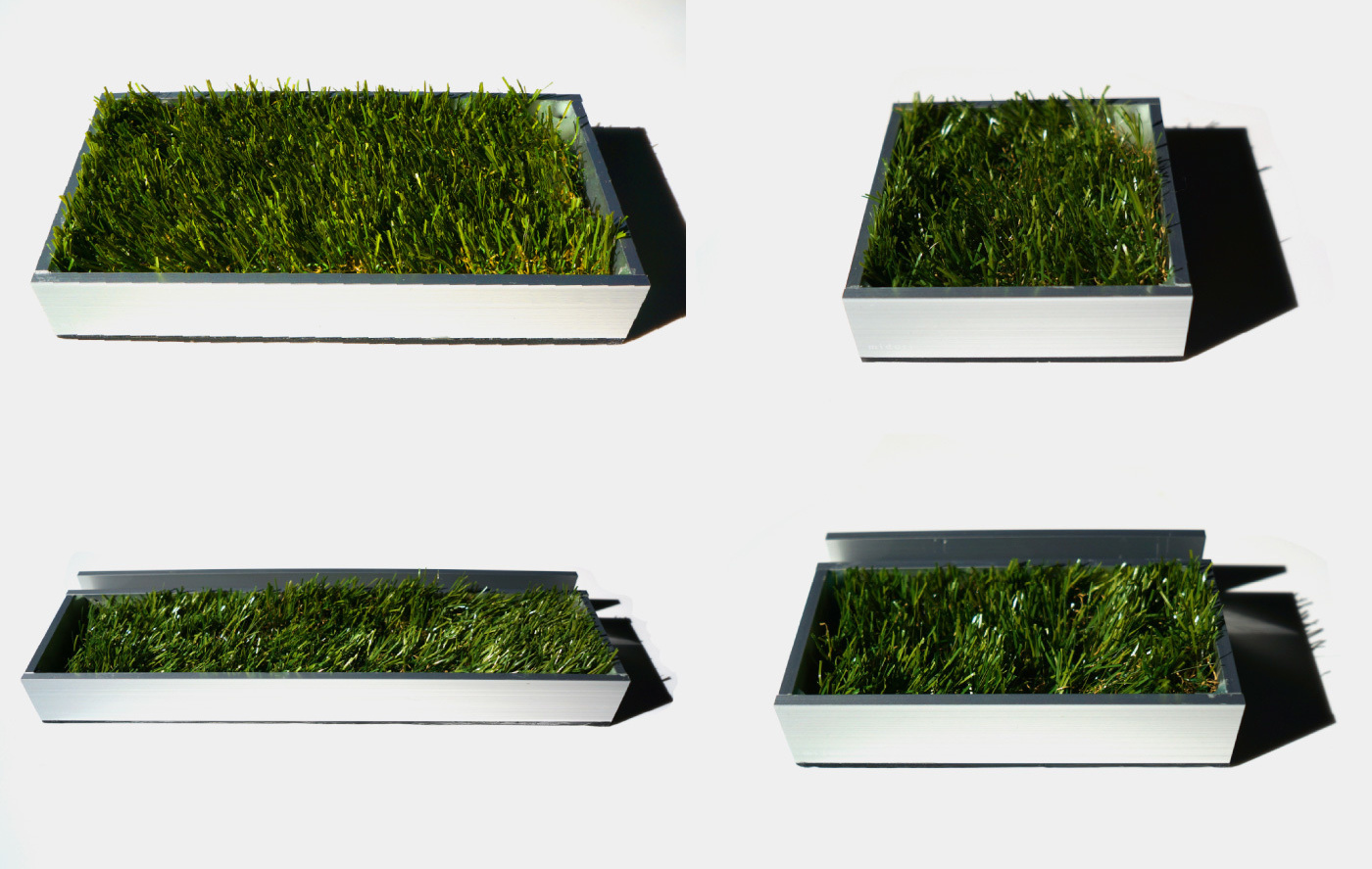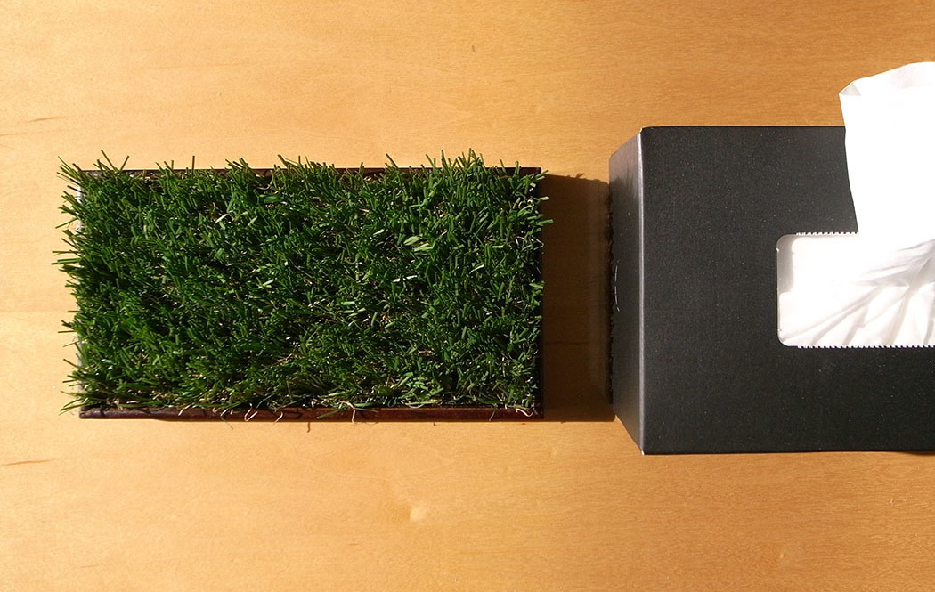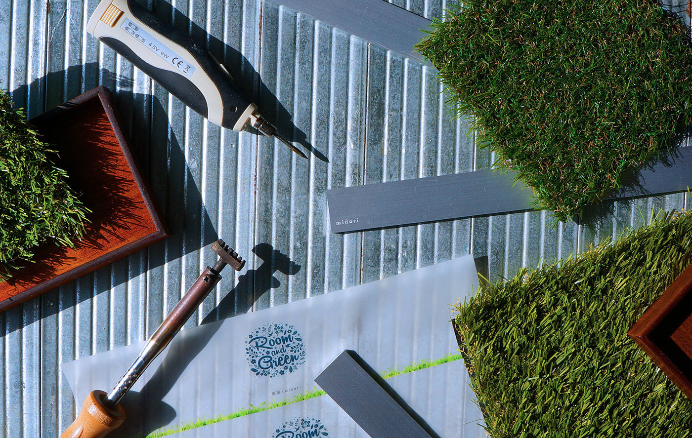 midoriはまるで公園の芝生を切り抜いたような小さな公園です。複数の色の違う芝や枯れ芝でまるで本物の芝生のようです。近所の小さな公園をあなたの部屋に。