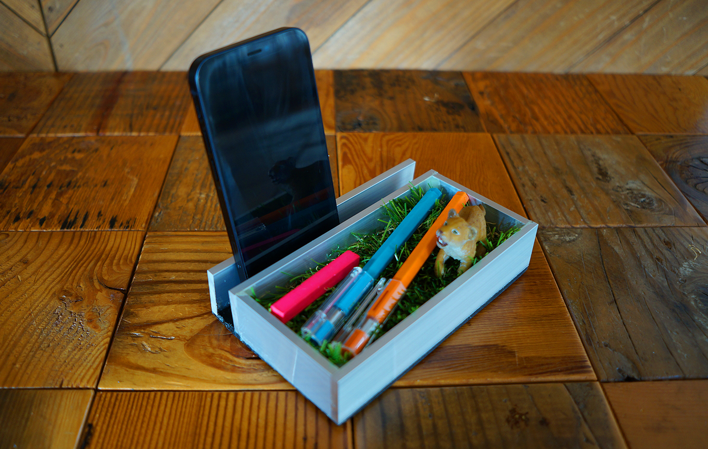 小さな公園があなたの部屋に誕生します。横210mm×奥行き110mmの使いやすいサイズでペンやカッターなど多数置く事ができます。また右上にペン挿入口が1箇所あります。柔らかい芝生がクッションとなりスマホや時計やメガネ等が傷つきにくくなっています。