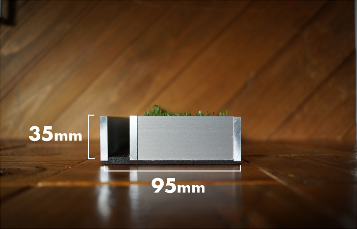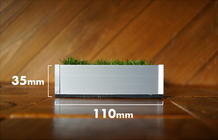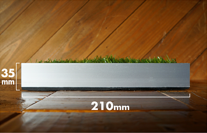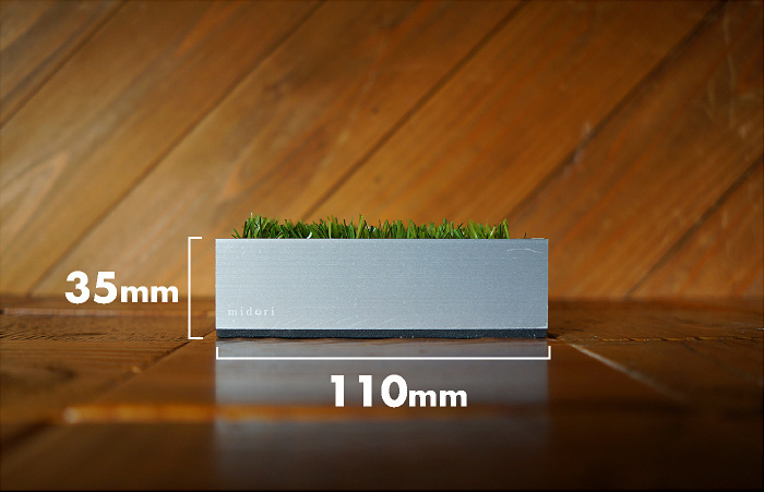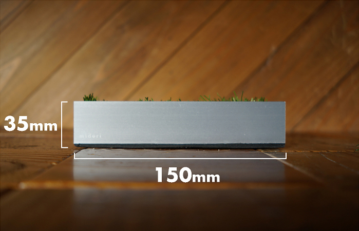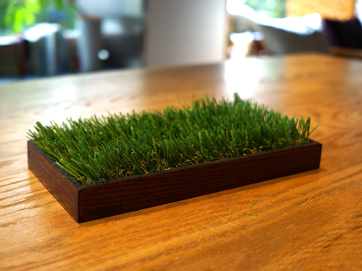 midori最大サイズの縦横210mmの正方形サイズで、ニス塗りの高級木材トレイを採用し、芝生との相性抜群です。購入した方々はオフィスよりご自宅の方に使用してくださる方が多くリビンク、和室等に使用して頂いています。