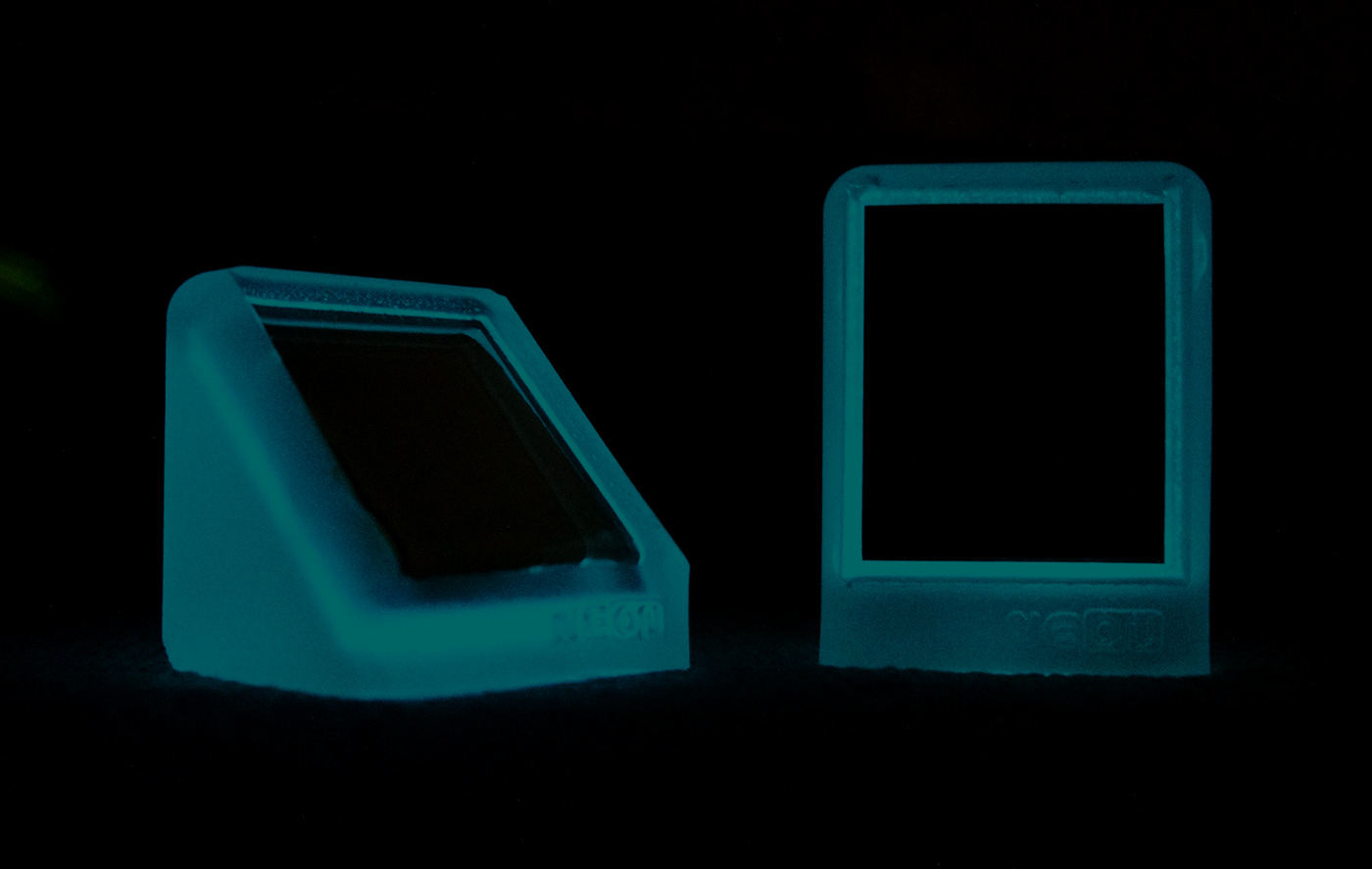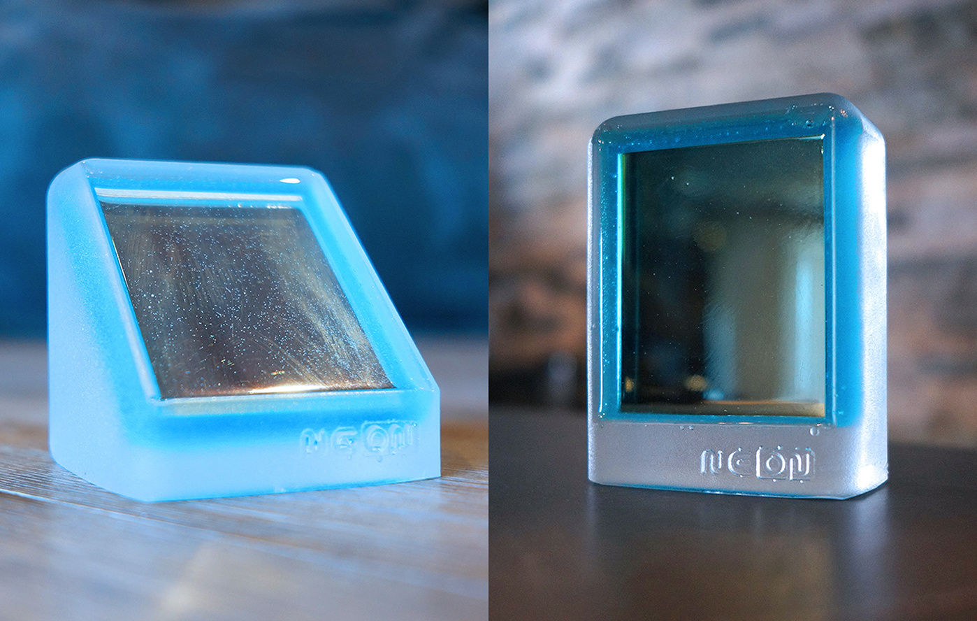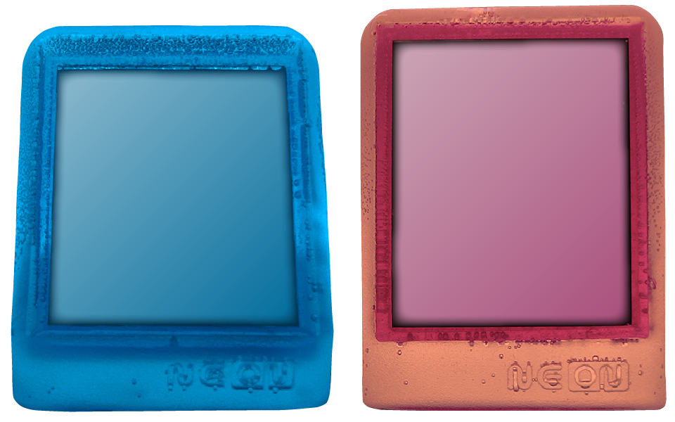 NEONはデスク等に “置いて” 使用する斜め45度に傾いているNEON-Aと “手持ち” で使用するNEON-Bの2種類があります。またネオン灯のように発色するブルーとピンクの2種類。あなたの用途に合わせてご検討ください。