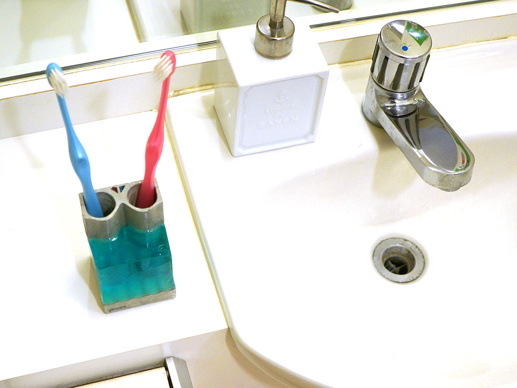 Pool-Dはは2つの直径23mmの差し込み口で歯ブラシスタンド用として製作しました。底面にはラバーボードを装着して滑り止め対策もしています。もちろんペンスタンドとして両側に数本のペンを入れて使用する事もできます。