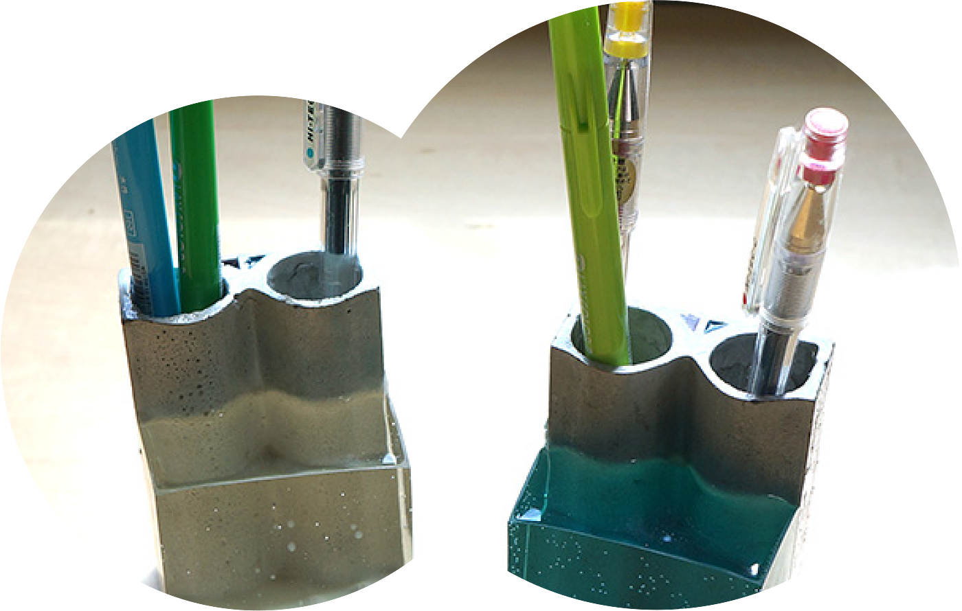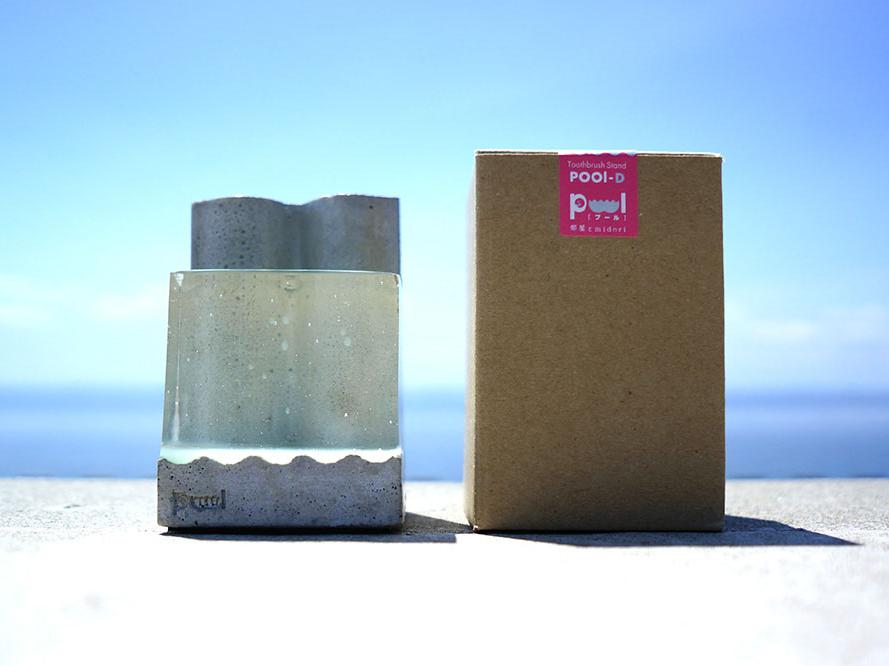 Pool-Dに置く洗面台は湿気が多い為、コンクリートに光沢コーテング、底面をラバーボードにして転倒防止をしています。パートナー・ご友人の結婚プレゼントとしていかがでしょうか?またペンスタンドとしてもご使用いただけます。