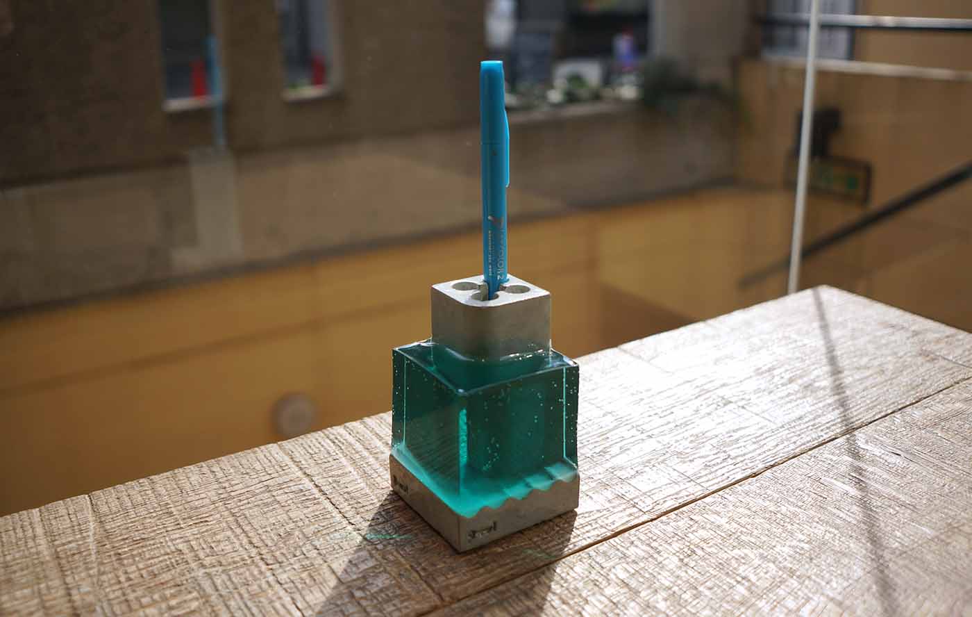 あなたの机に“安らぎ”のオブジェを・・・ペンスタンド“Pool”は都会の公園で噴水を眺めたりと水は私たちは安らぎや落ち着きを得ることがあります。その水に安らぎ効果を自宅に取り入れたい、との思いで製作完成したものが、Poolです。どこにも売っていないオリジナル製品です。
