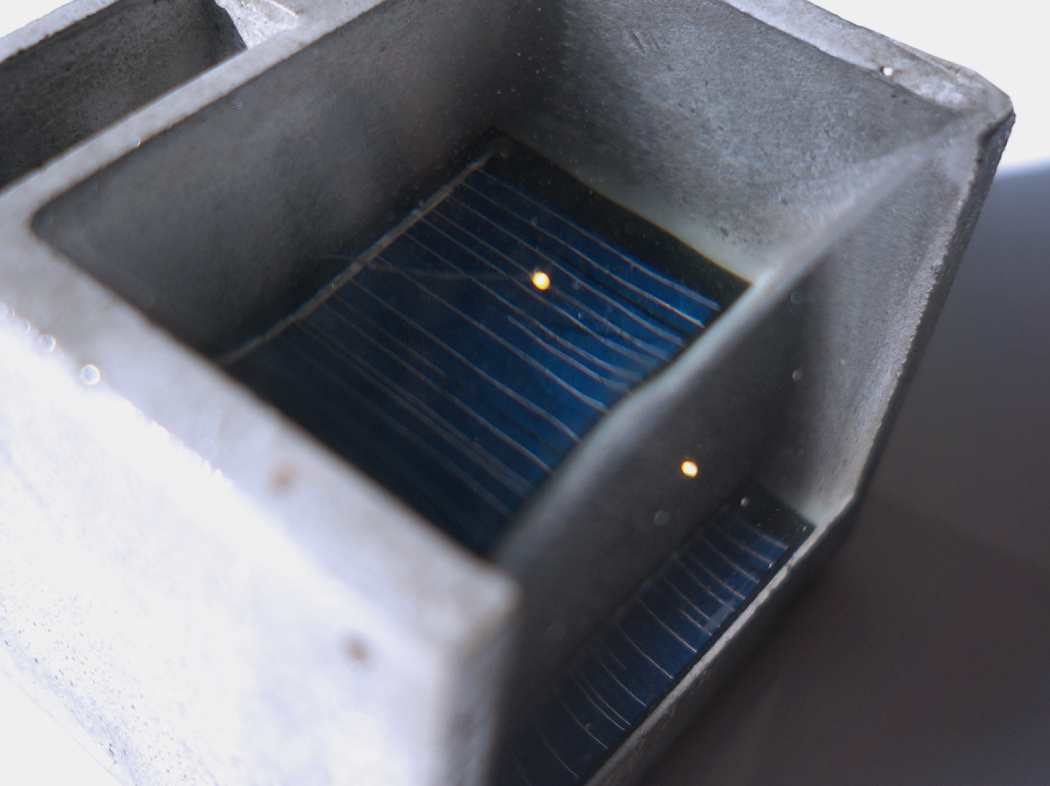 小さな家のような立方体の中に一粒のLEDライトが淡い灯りであなたの心を照らします。光パネル使用しているので電池は必要はありません。akari01は本体の中心に浮かんでいるようなにLEDが埋め込み見ていると幻想的な気持ちになります。