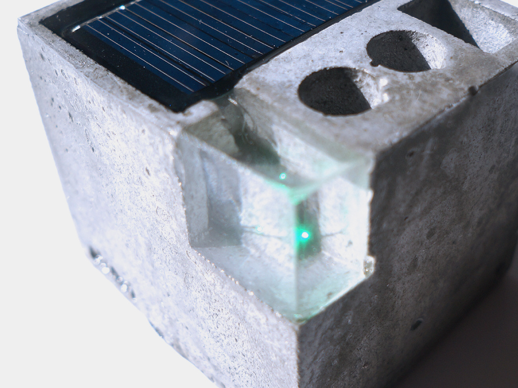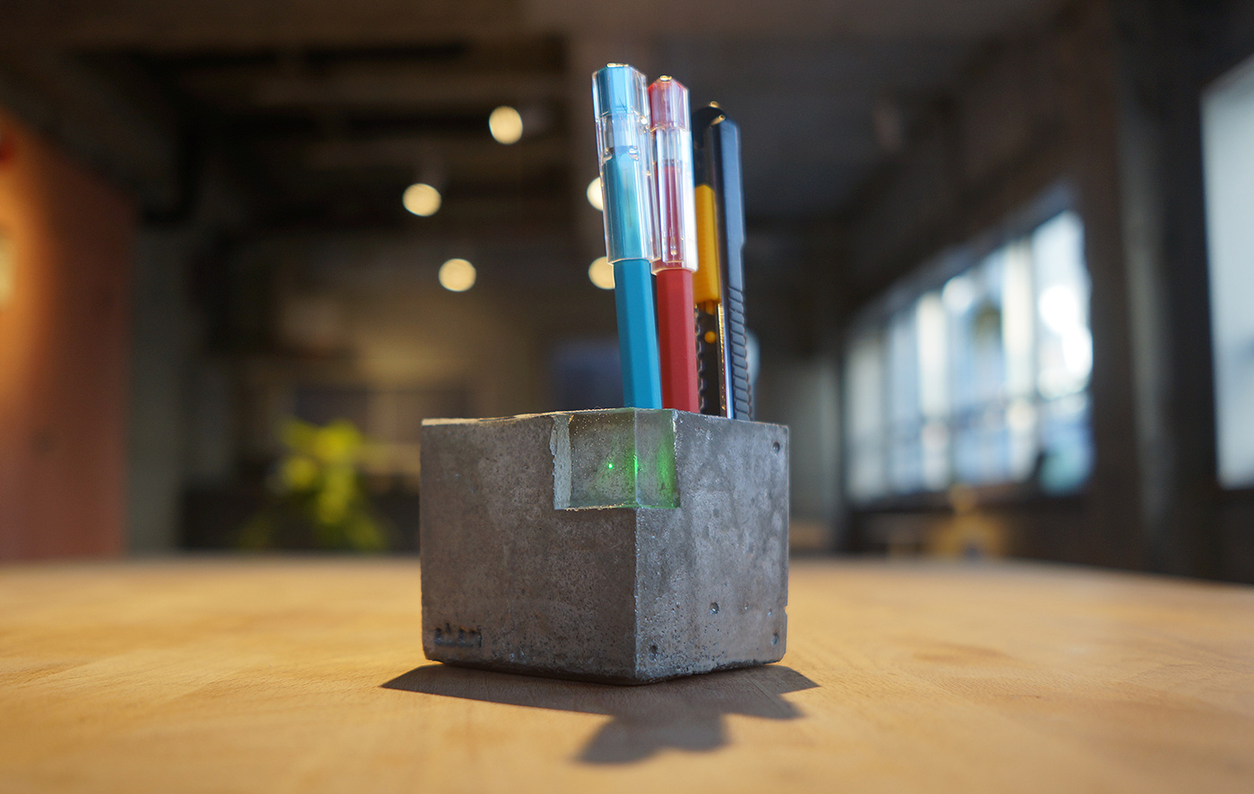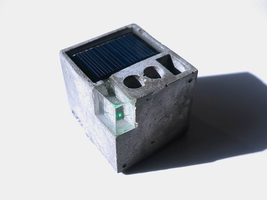 小さな家のような立方体の中に一粒のLEDライトが淡い灯りであなたの心を照らします。光パネル使用しているので電池は必要はありません。akari02は右上の小さいスペースにLEDを埋め込みました。実際のコンクリート住宅のミニチュアのような雰囲気です