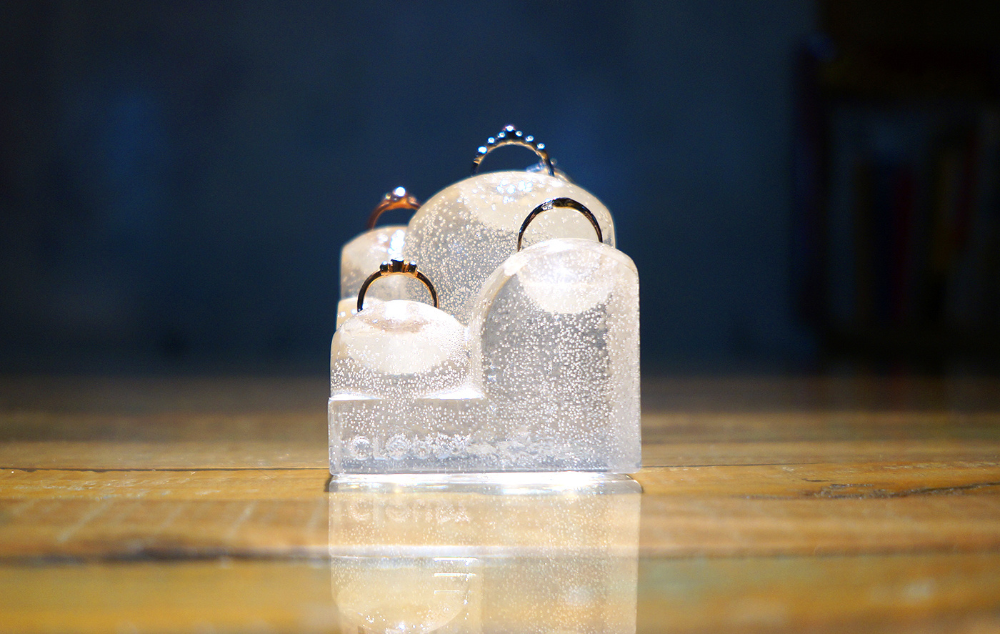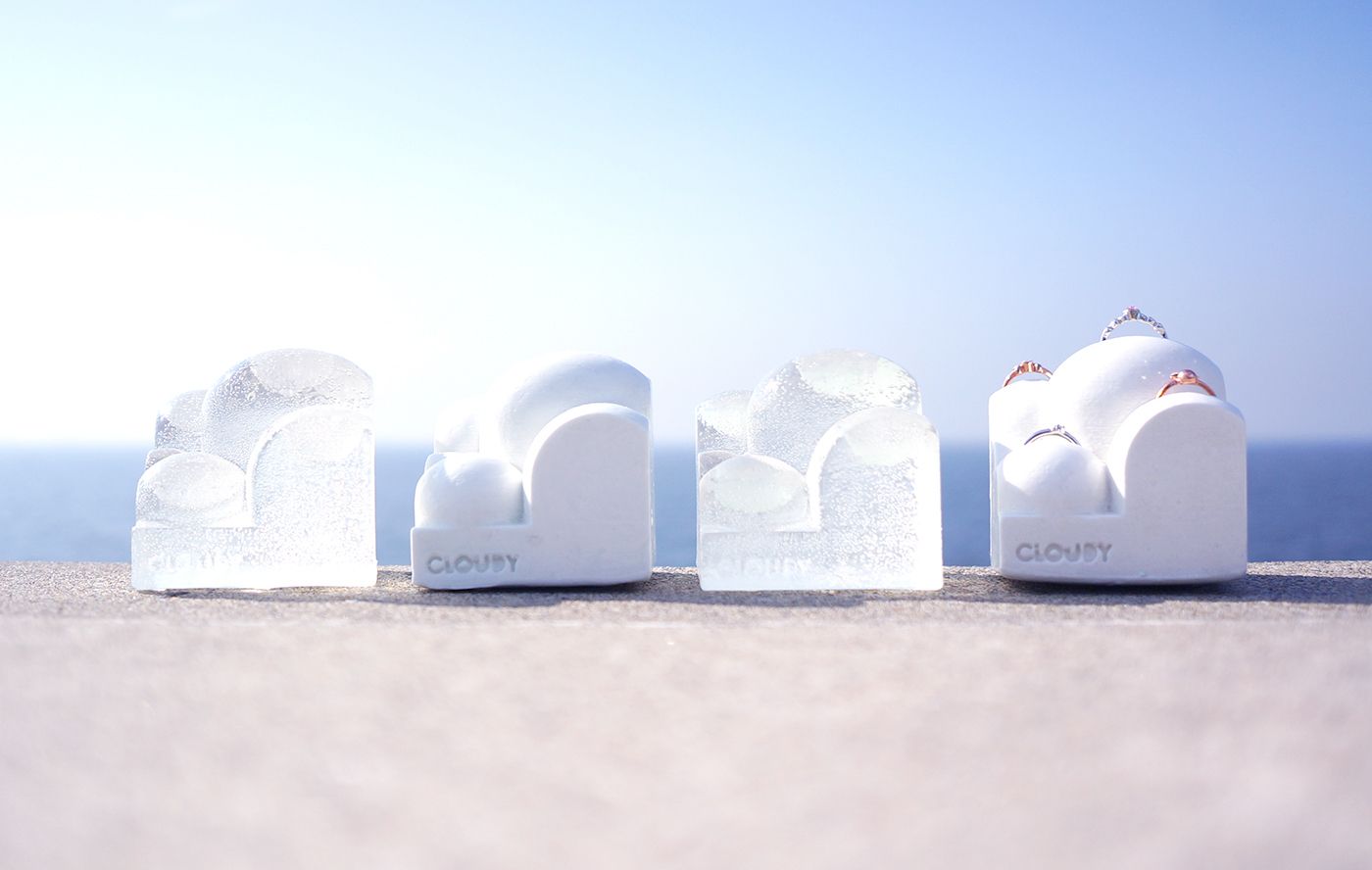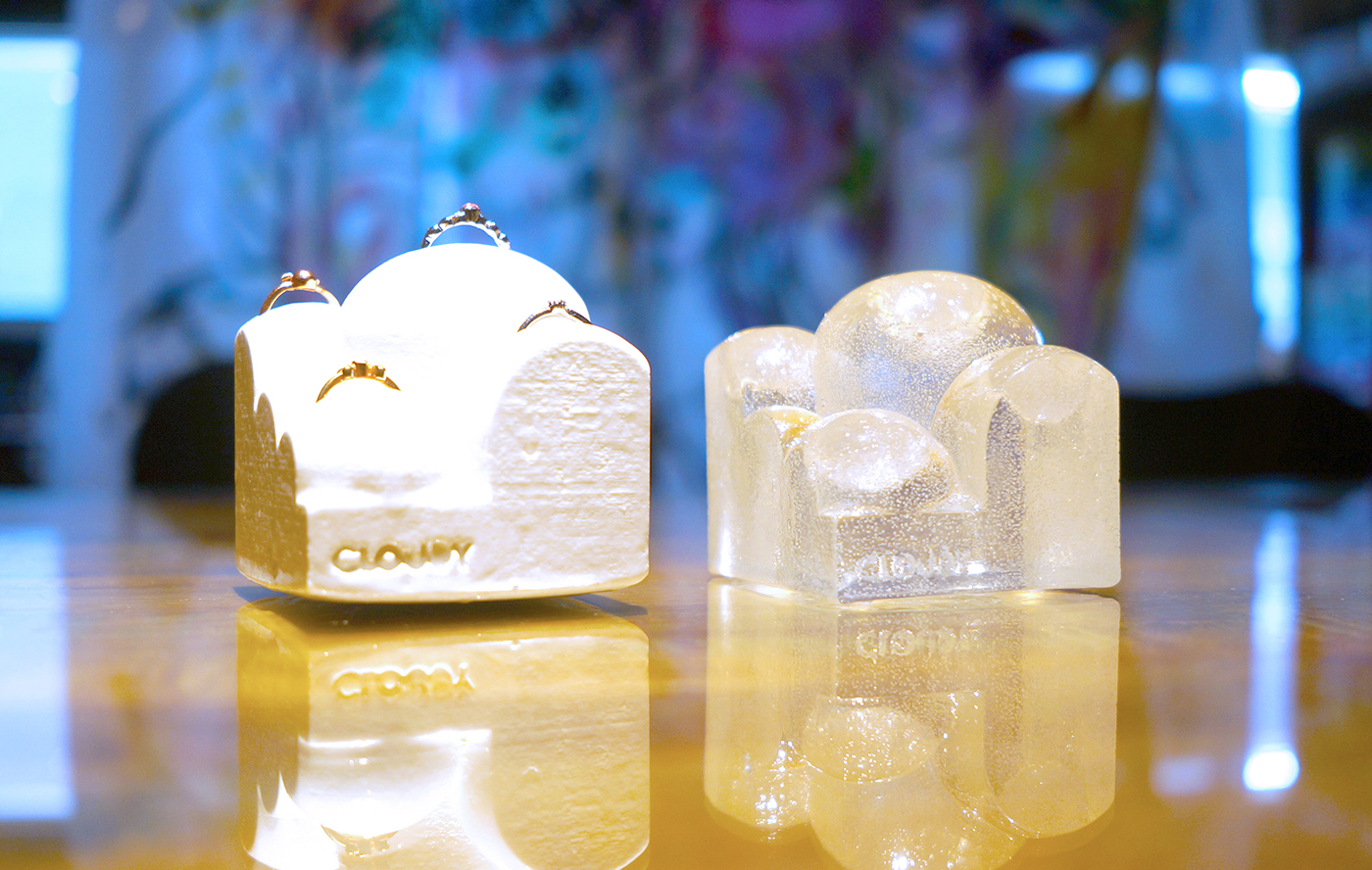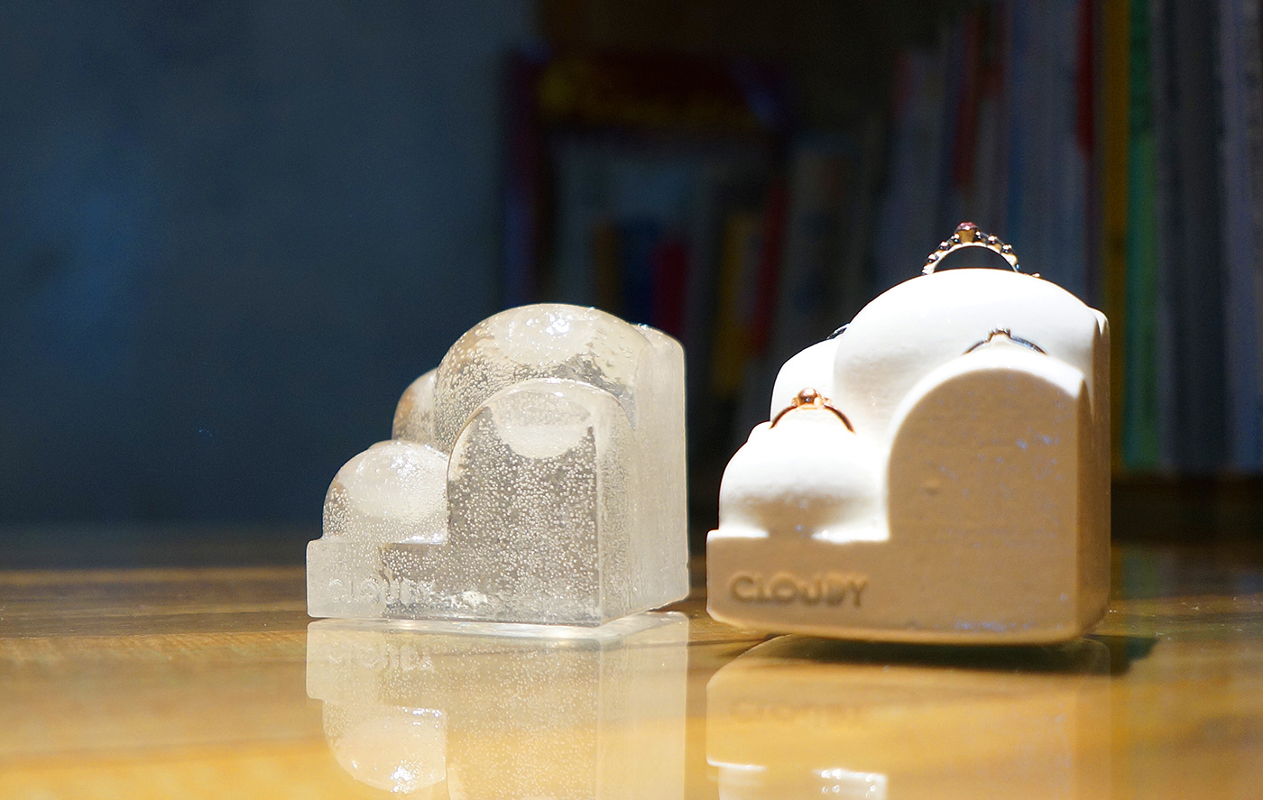 “CLOUDY”は光の反射が特長です。光が当たる角度によって曲面が美しい反射光が美しいです。指輪スタンド又は雲のアートオブジェと多面的な魅力を秘めていて、都会の無機質なオフィス/自宅に安らぎを与えてくれます。