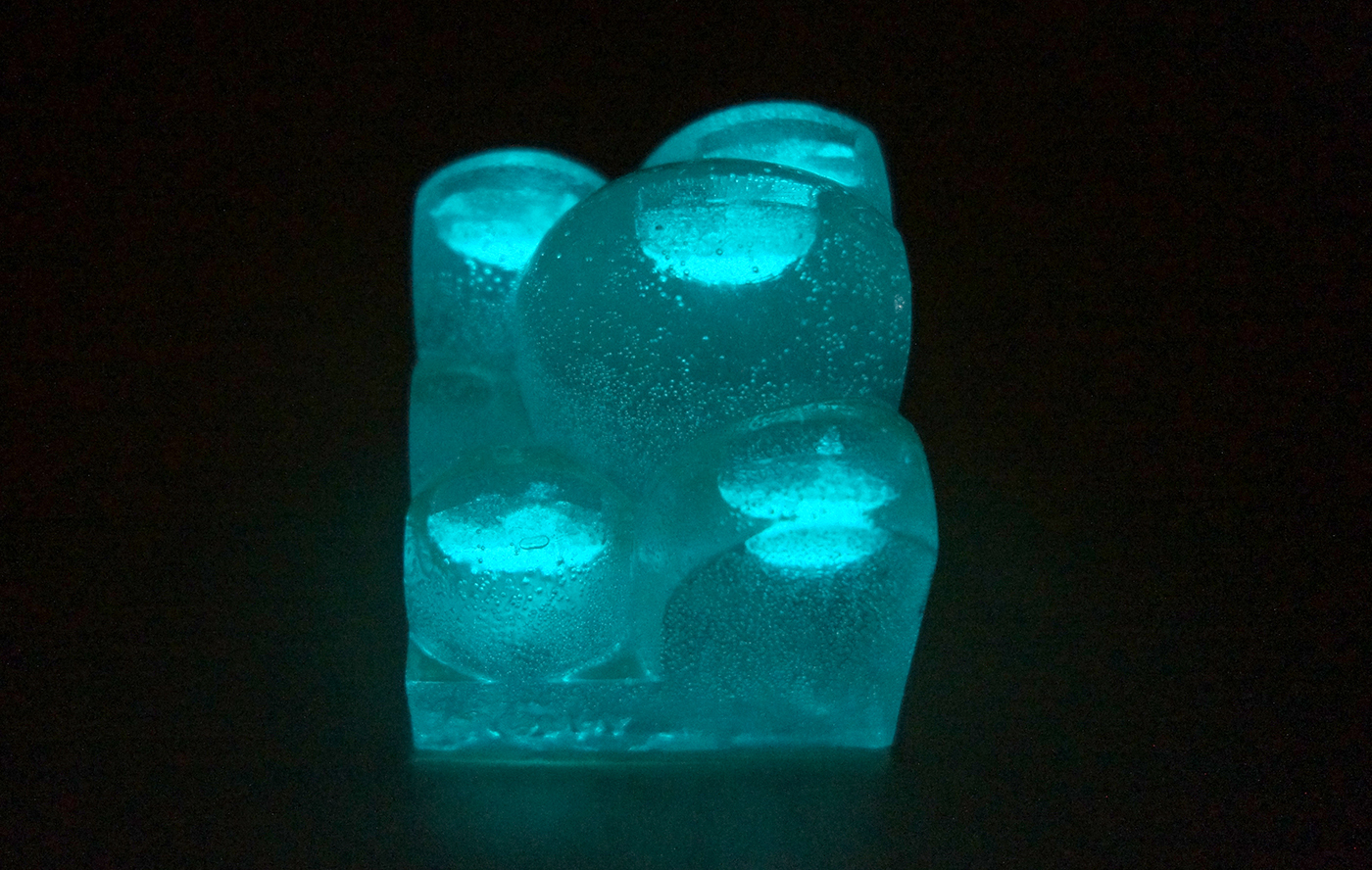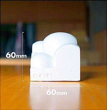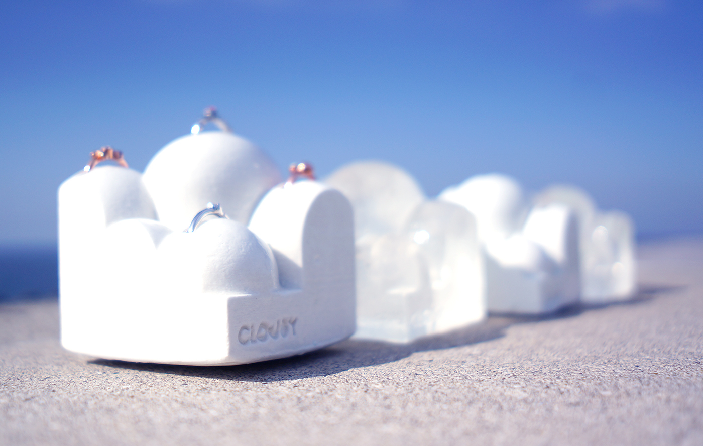 ホワイトとクリアの2色を用意しています。ホワイトは陶器のようなホワイトコンクリート。クリアは気泡を透明樹脂に散りばめ雲の表現。どちらも雲を連想させるイメージとなっています。