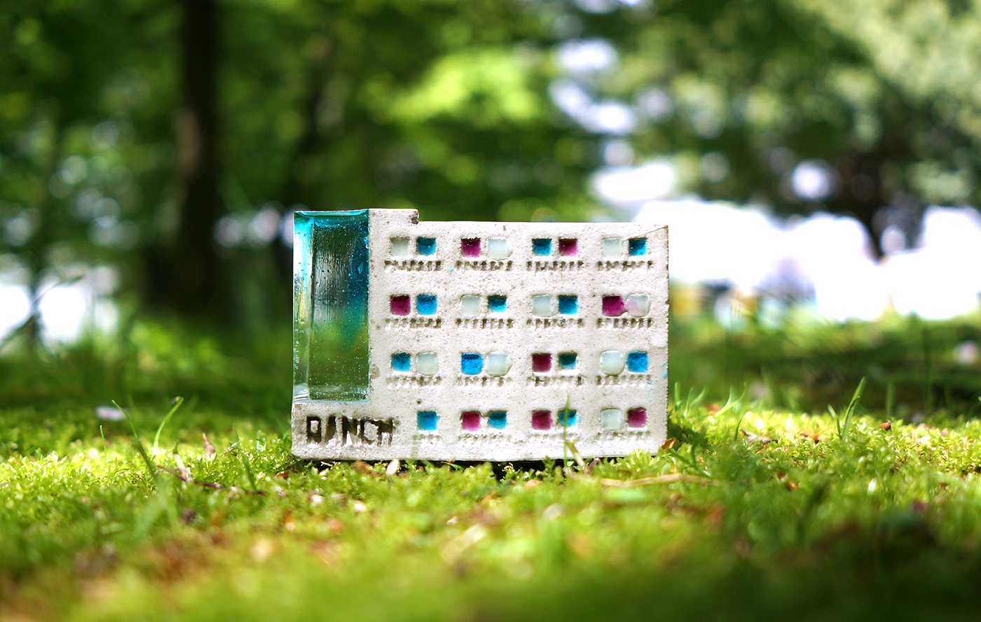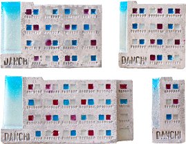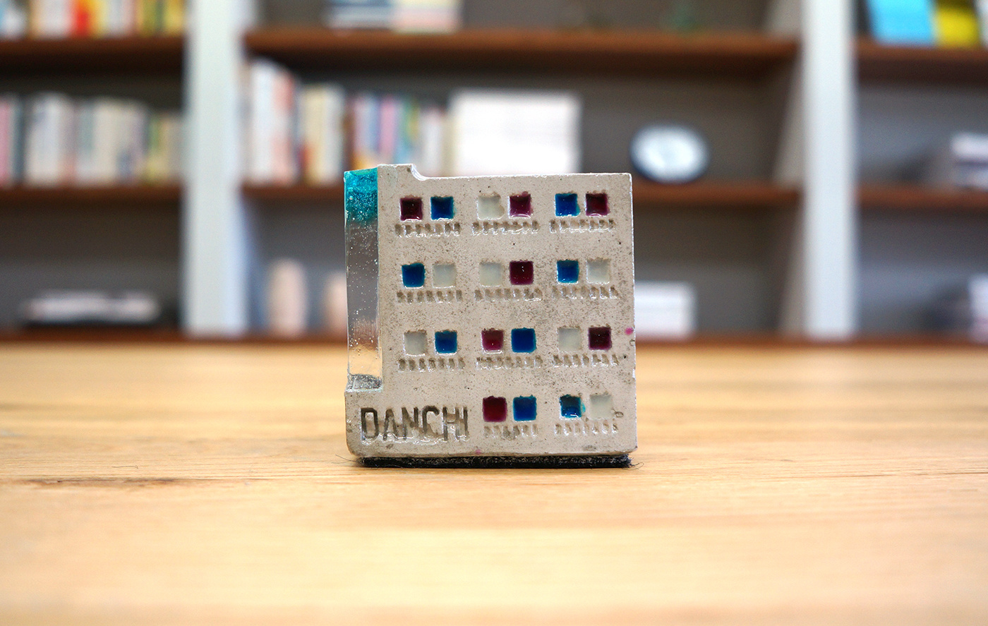 いろいろな人が住んでいる“DANCHI”。それぞれの窓/部屋にそれぞれの思い出があります。赤窓、青窓、光る窓の3種類の窓がランダムに“DANCHI”を彩っています。1窓、1窓、ハンドメイドで着色しています。どれ一つ同じではありません。