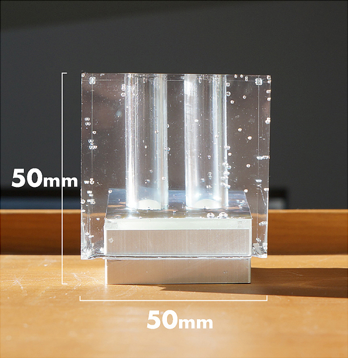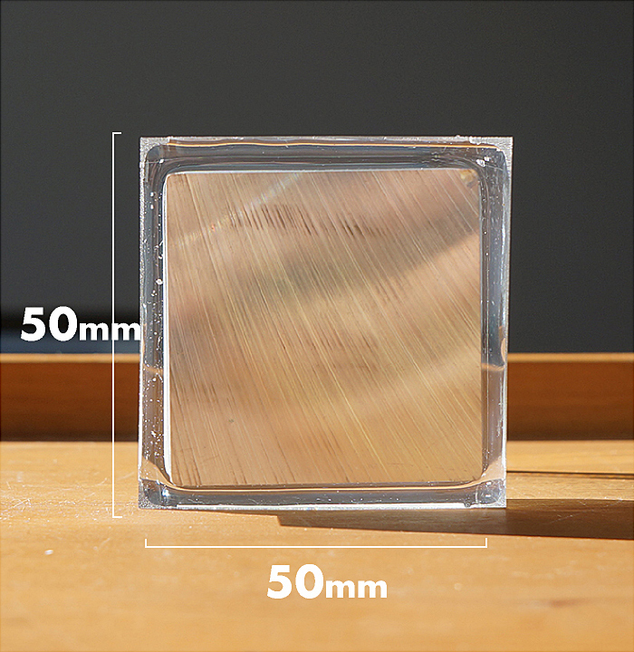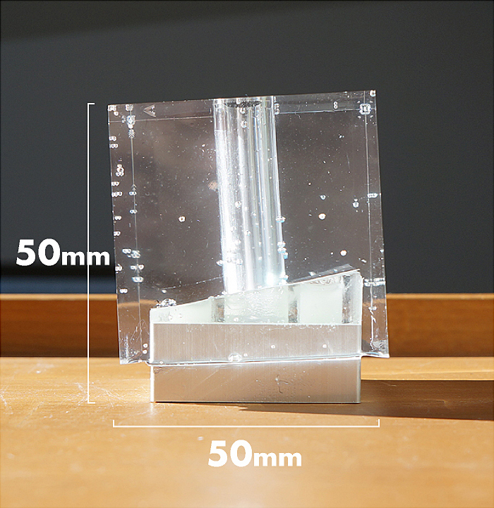 50mmの立方体に壮大な自然の埋め込みました。小さく場所をとらないので、自宅はもちろんスペースの小さい職場に置いてもらえるとストレス解消になります。