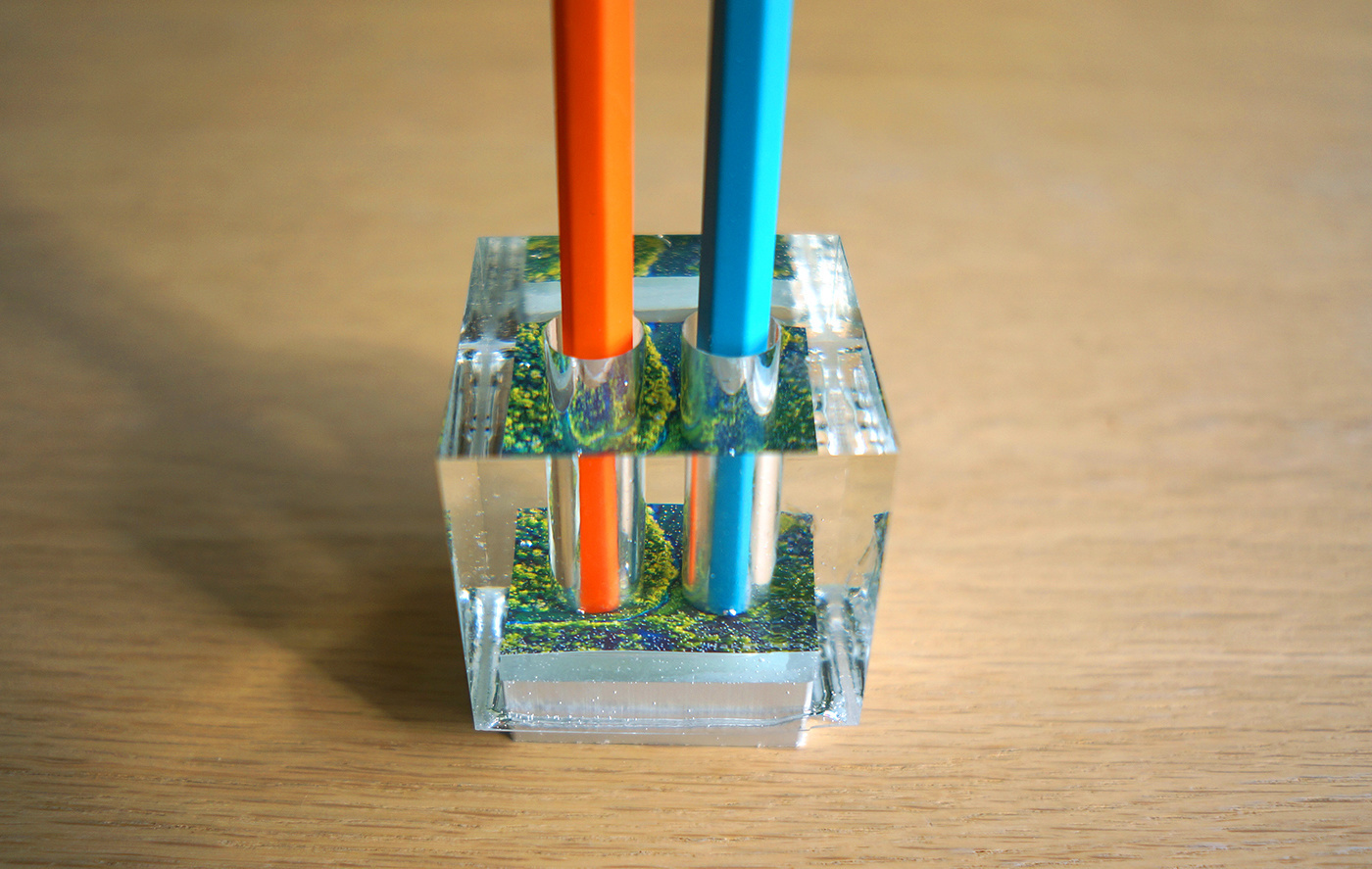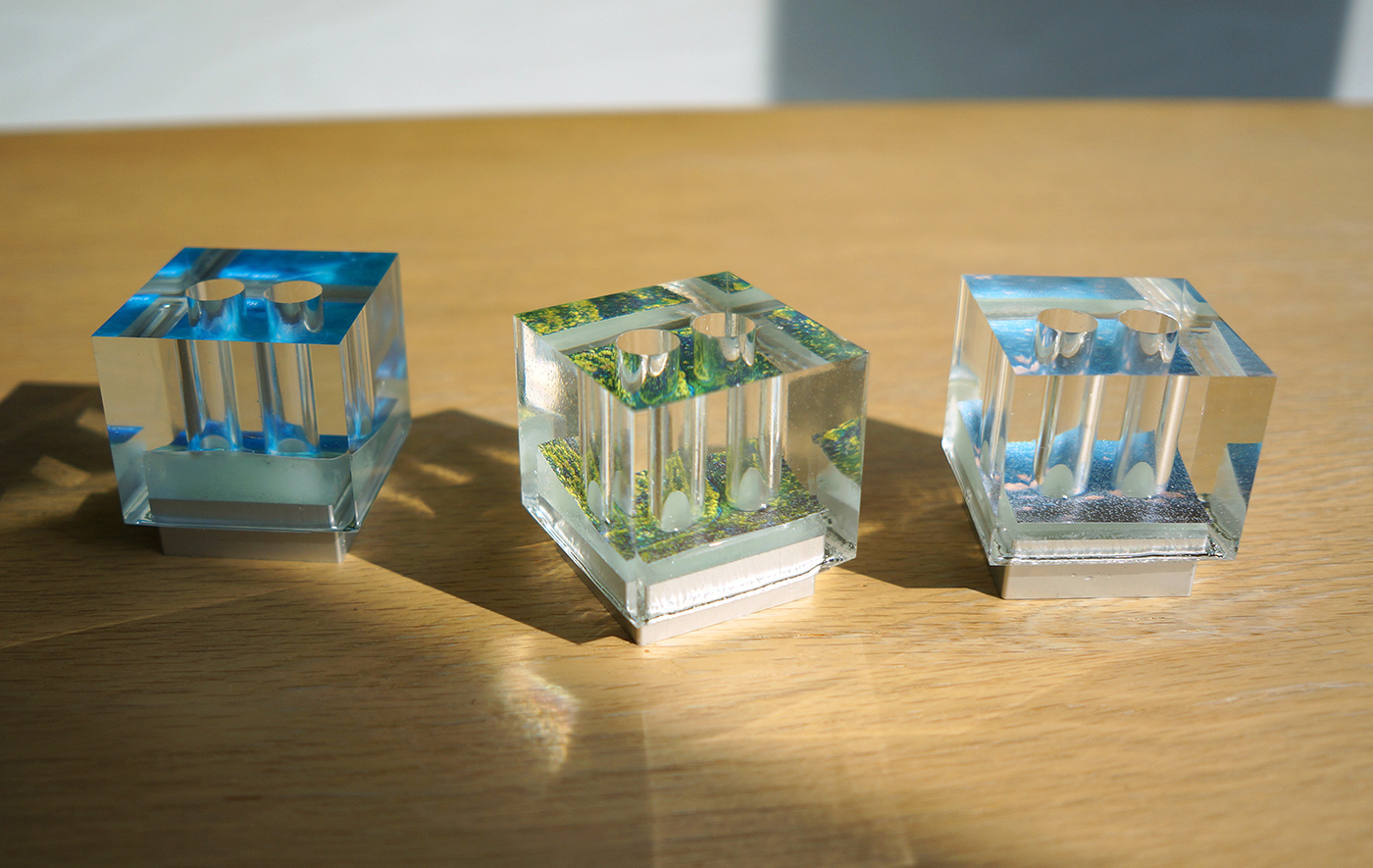 50mmの立方体の中に自然の空間を表現したCube Stand ”HAKOSORA”。オブジェながらペンスタンドとしても使用していただけます。行動力が出る。緑の生命力が感じられる。〜森〜