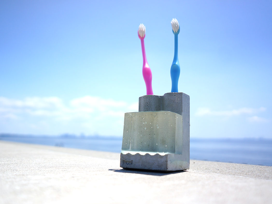 Pool-Dに置く洗面台は湿気が多い為、コンクリートに光沢コーテング、底面をラバーボードにして転倒防止をしています。パートナー・ご友人の結婚プレゼントとしていかがでしょうか?またペンスタンドとしてもご使用いただけます。