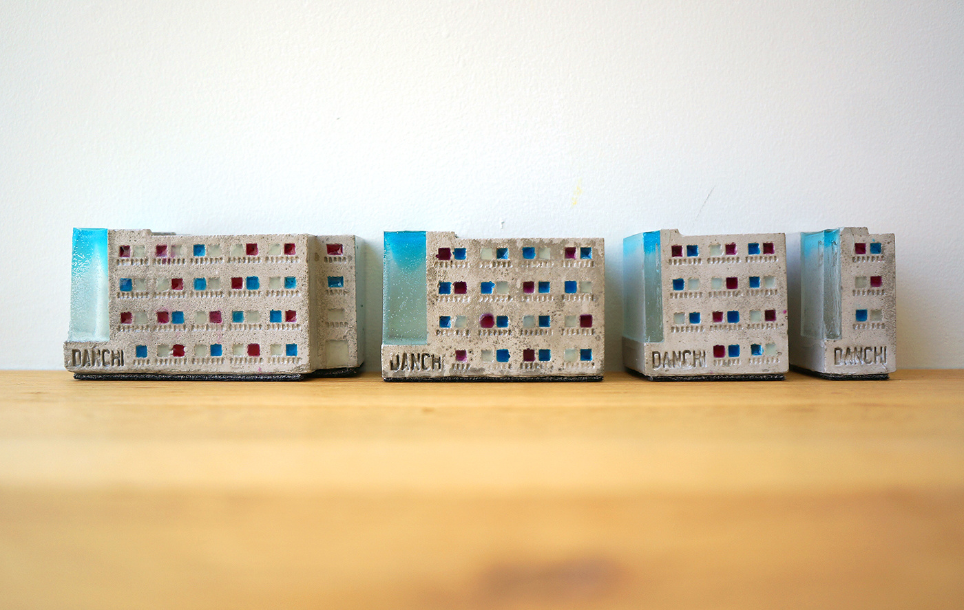 ABC棟+D棟を入れたセット販売です。ABC棟合計7,700円のところを6,500円です。また横幅25mmの最小“DANCHI”D棟付きです。まさにあなたのデスク上に“あなた団地”が完成します。