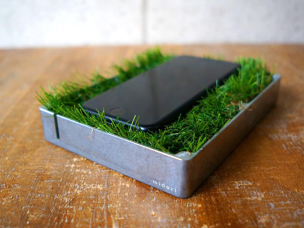 “S” Series midori-SG midori-SGはW120×L170mmのスマホスタンドでiPhoneやAndroid端末のサイズにもほぼ収まる状態となっています。ケーブルを固定できる溝と芝生のクッション性で相性が良く、どこにもないスマホスタンドです。midori刻印あり。 ¥4,200(tax in) SizeW120×D170×H35mm 合わせて購入 N-Series midori-NC ¥3,400 W-Series midori-WE ¥1,200